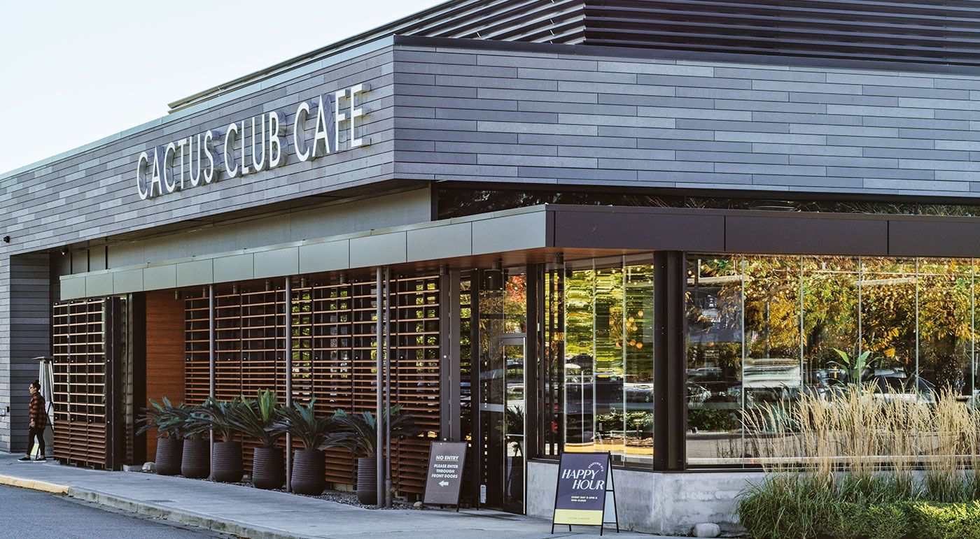 Das Cactus Club Cafe vereint gehobene Küche mit einer zwanglosen Atmosphäre und stilvollem Ambiente. Innen spiegelt eine edle Materialpalette die Landschaft der kanadischen Westküste wider: Weißeiche, ölpolierte Bronze und dunkles Leder schaffen eine warme, einladende Stimmung, während Kunstwerke von Andy Warhol als Blickfang dienen. Außen setzt die Fassade aus horizontalen Glasfaserbeton-Latten, ergänzt durch schwarze Aluminiumrahmen, das nahtlose Design fort und lädt zum Verweilen ein. Fotos: Ditz Fejer