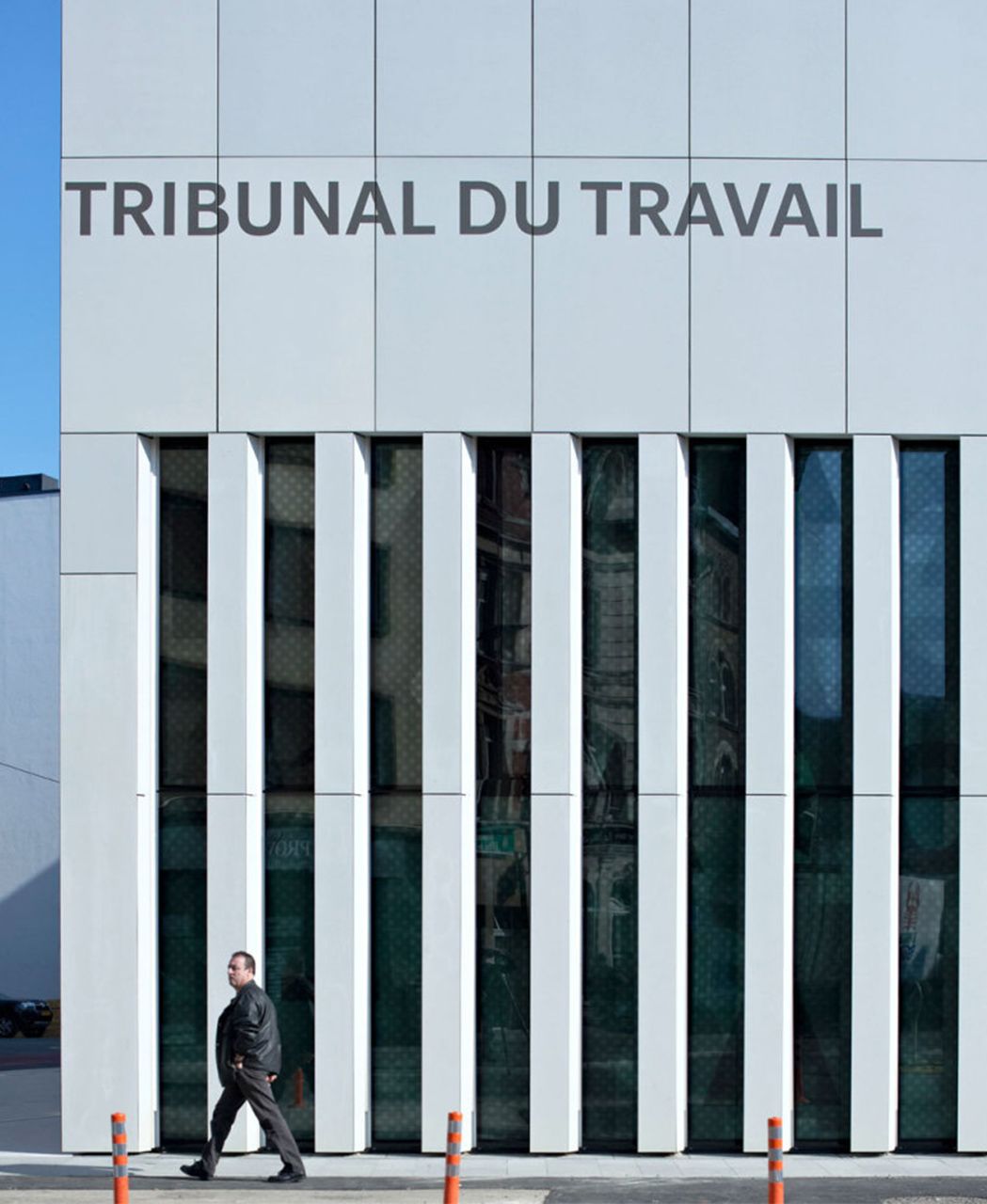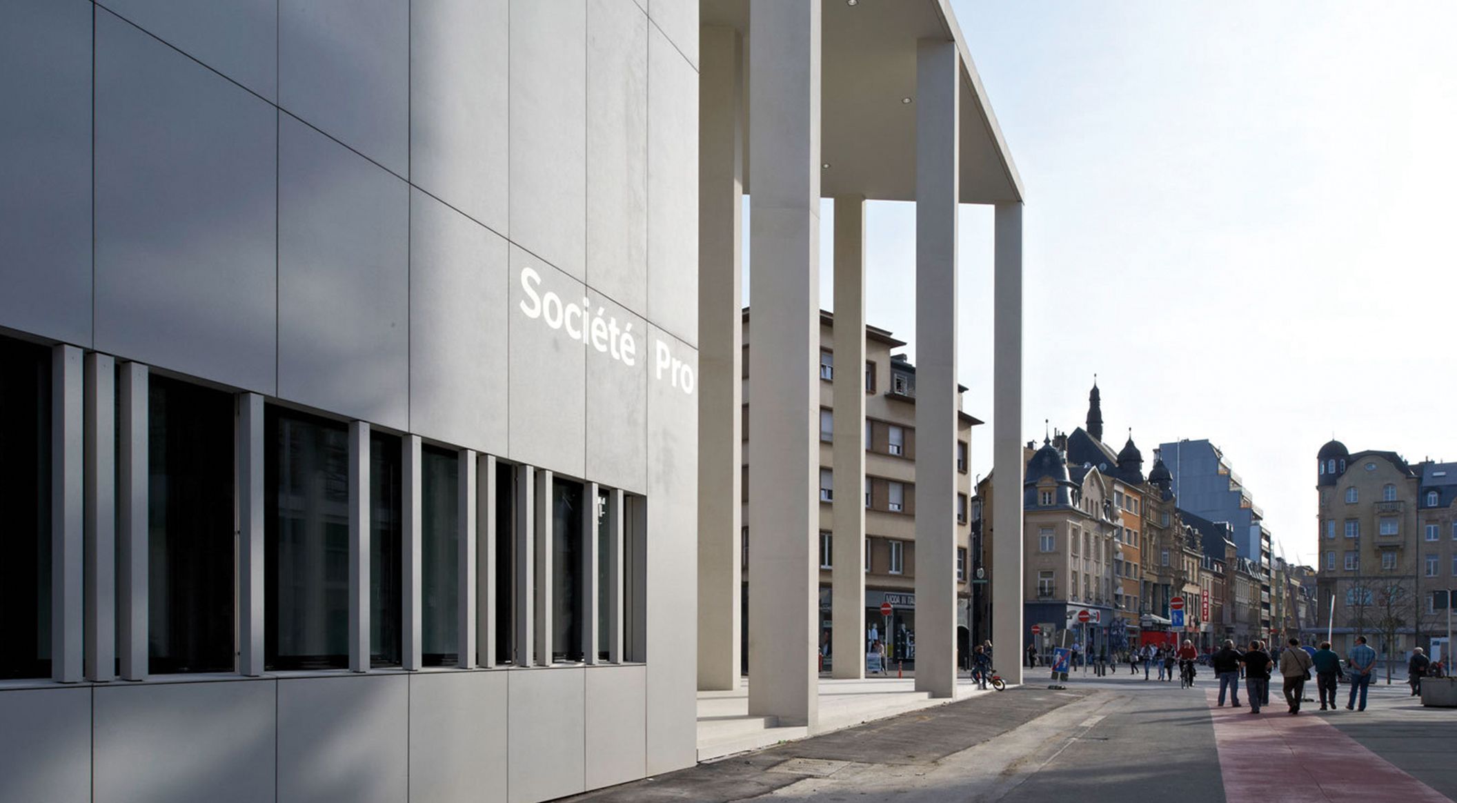 Aufgrund der stetig wachsenden Mitarbeiterzahl und der geänderten Arbeitsstrukturen wurde für das Escher Friedensgericht ein neues Gebäude geplant. Der Neubau berücksichtigt die neuen Rahmenbedingungen, Sicherheitsstandards und energetischen Vorgaben. Auch das Bild nach außen wurde angepasst, die Judikative präsentiert sich offener und transparenter. Durch die großzügigen Glasflächen wirkt das monolithische Gebäude freundlich und hell, eine Verbindung zwischen innen und außen wird geschaffen. Fotos: Ferdinand Graf von Luckner