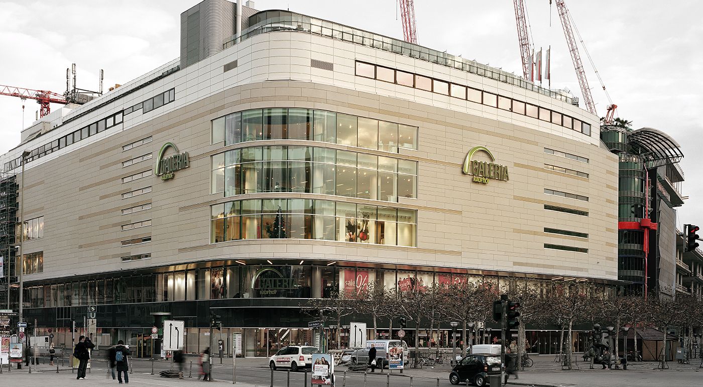 Die Galeria Frankfurt an der Hauptwache wurde erneuert. Insgesamt bieten über 80 Markenshops auf zehn Verkaufsetagen mit einer Gesamtfläche von über 25.000 m² den Kunden ein außergewöhnliches Einkaufserlebnis. Die neue Fassade signalisiert den Passanten und Kunden Transparenz und Offenheit, nach innen und außen. Die ehemalige Blechverkleidung ist einer fibreC Glasfaserbetonfassade in Sandsteinoptik gewichen. Die Architekten entschieden sich für concrete skin Platten und formparts in sahara und sandstone. Die Elemente fügen sich dabei nahtlos in die bereits vorhandene Bausubstanz ein und harmonieren perfekt mit der über drei Etagen reichenden Hochglasgalerie mit insgesamt 1.500 m² Glasfläche.