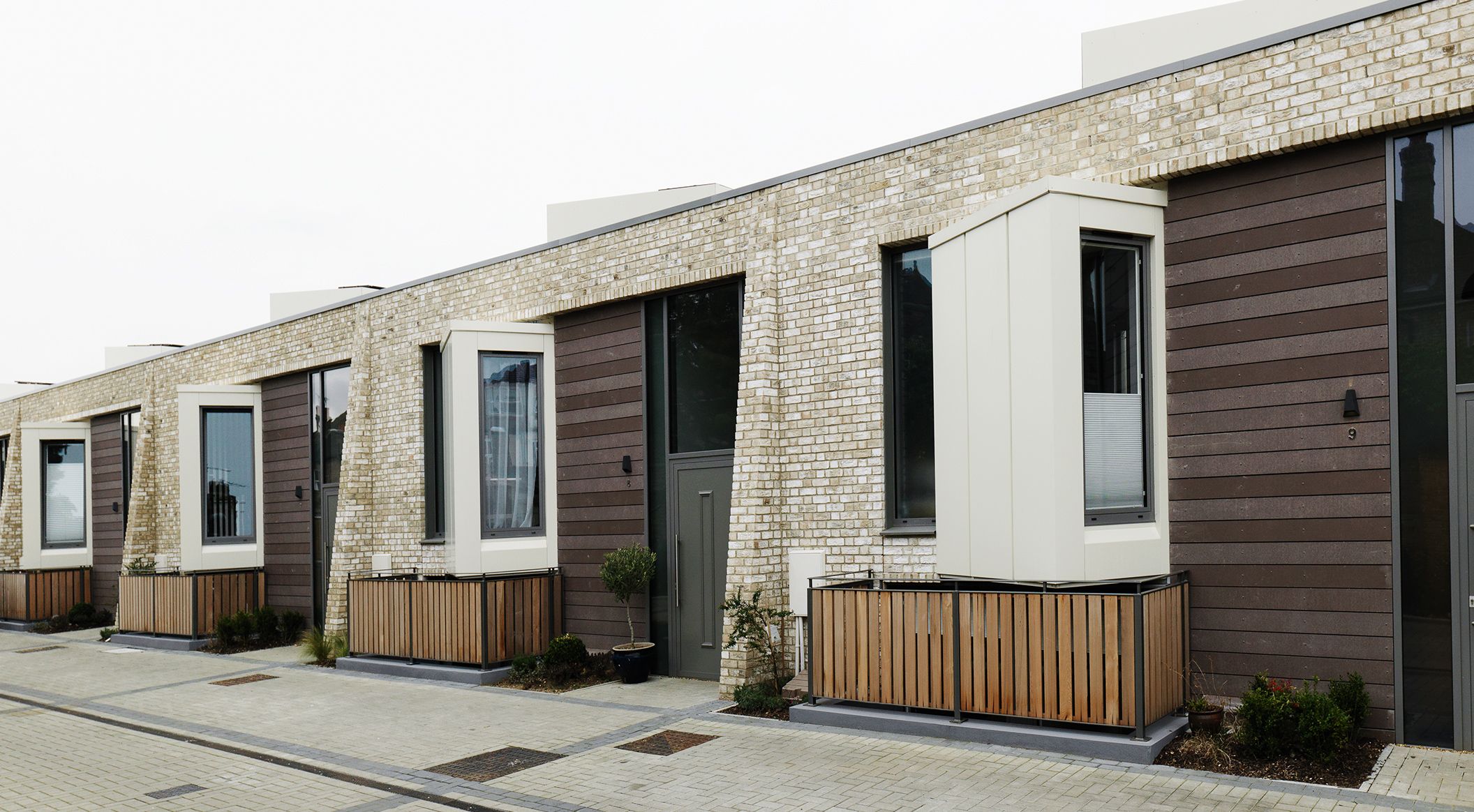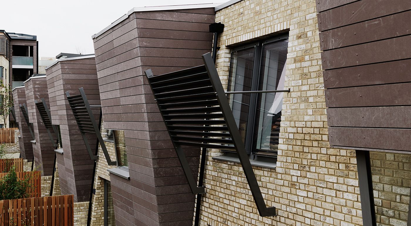 Um den beschränkten Platz effizient nutzen zu können, haben die Architekten von Author Architecture Ltd. ein halbes Geschoss des Gebäudes in den Boden versenkt. Für die Fassade wurden öko skin Latten in terra verwendet.