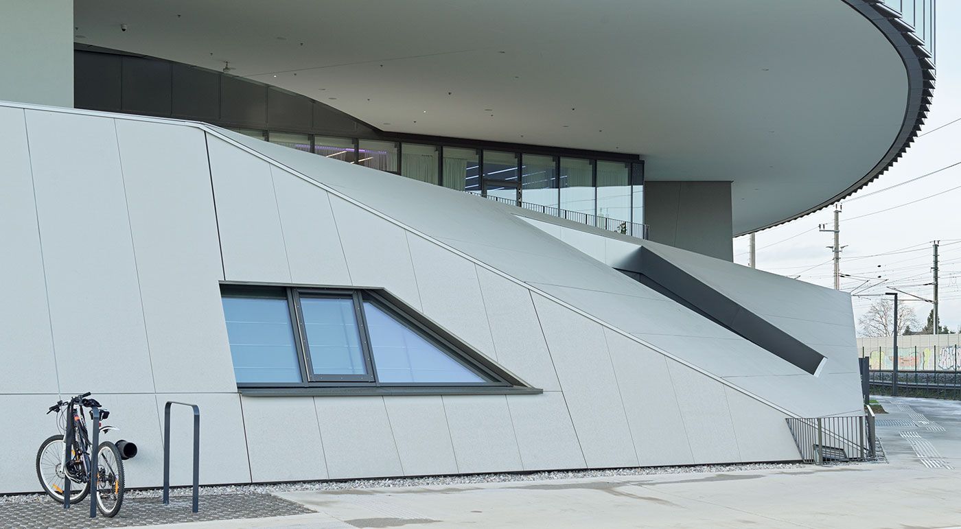 Das architektonische Highlight vereint moderne Büro- und Showroomflächen, ein internationales Hotel, ein Fitnessstudio sowie exzellente Gastronomie und setzt neue Maßstäbe für Funktionalität und Gestaltung. Beim Österreichischen Stahlbaupreis erhielt das Gebäude eine Anerkennung in der Kategorie „Leichtigkeit mit Stahl“. Fotos: Ditz Fejer