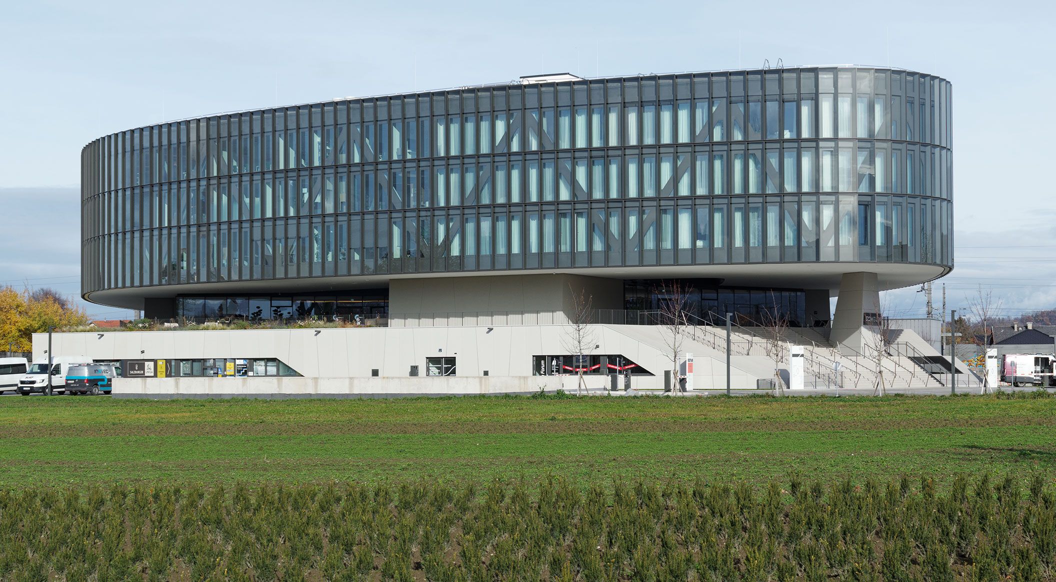 Das Büro- und Hotelgebäude HELIX in Salzburg beeindruckt mit drei scheinbar schwebenden, ringförmigen Obergeschossen, die einen 360°-Blick auf die Stadt und den innenliegenden Garten bieten. Eine großzügige Freitreppe führt zur Beletage mit Hotel- und Bürolobby.