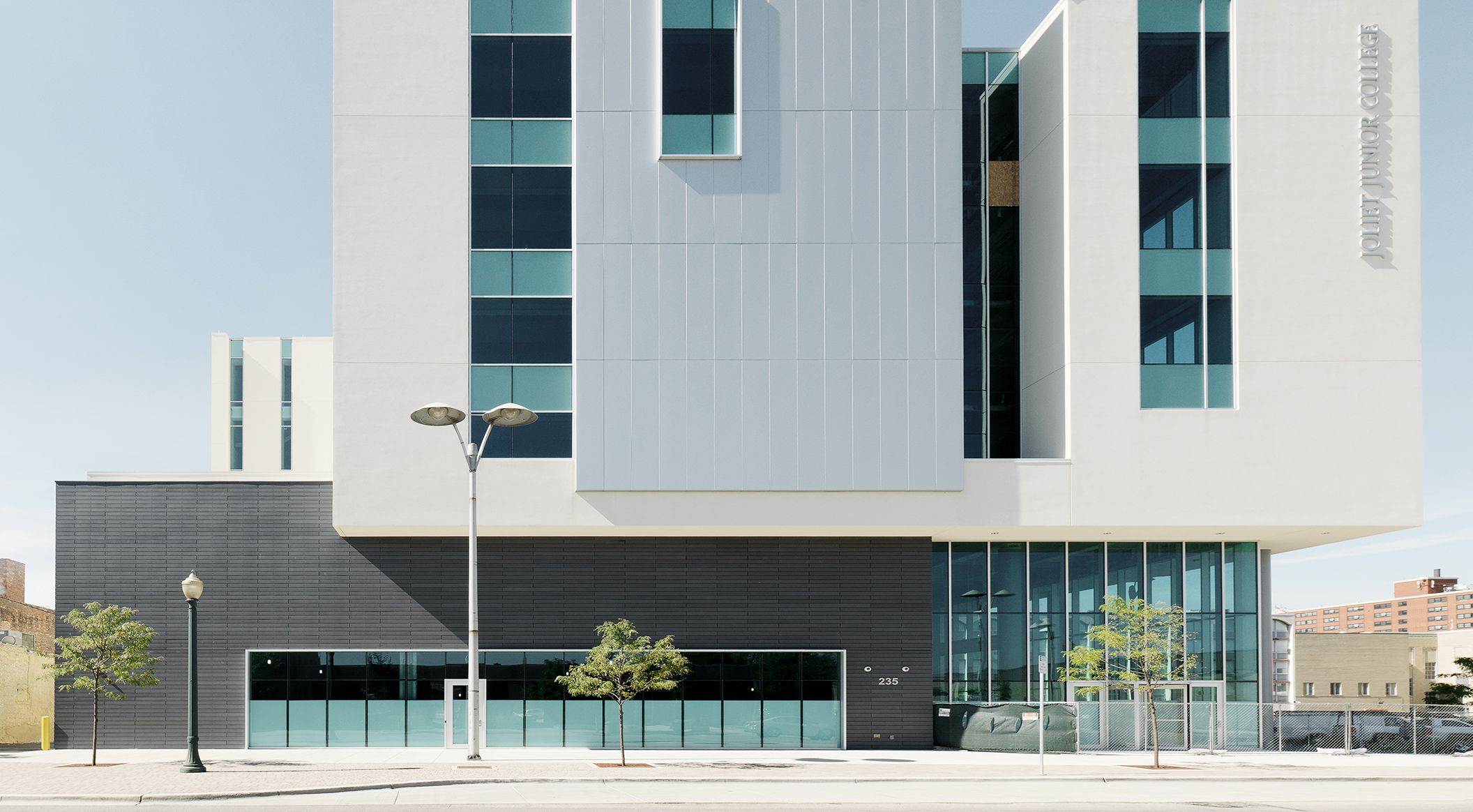 Um der wachsenden Nachfrage gerecht zu werden, musste das bestehende Wissenschaftslabor des Joliet Junior Colleges erweitert werden. Der Neubau umfasst 14 neue Labore, die vorhandenen Räume wurden renoviert. Die Architekten von Demonica Kemper verwendeten für die Fassade öko skin Latten in liquid black. Ein lichtdurchflutetes, zweistöckiges Atrium dient als Erweiterung des Korridors zum Gebäude und fördert die Interaktion von Studierenden und Lehrenden. Fotos: Ditz Fejer