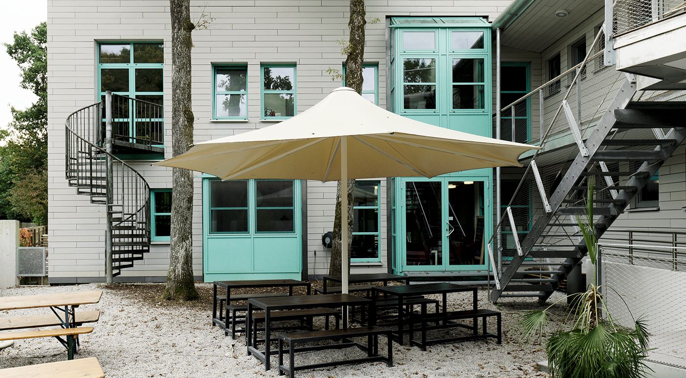 Der Kinderhort in Haar wurde erweitert und saniert und schaffte dadurch dringend benötigte, zusätzliche Hortplätze. Der Architekt Jürgen Schebesta plante die umfangreichen Sanierungen, die Fassade verkleidete er mit öko skin Latten.