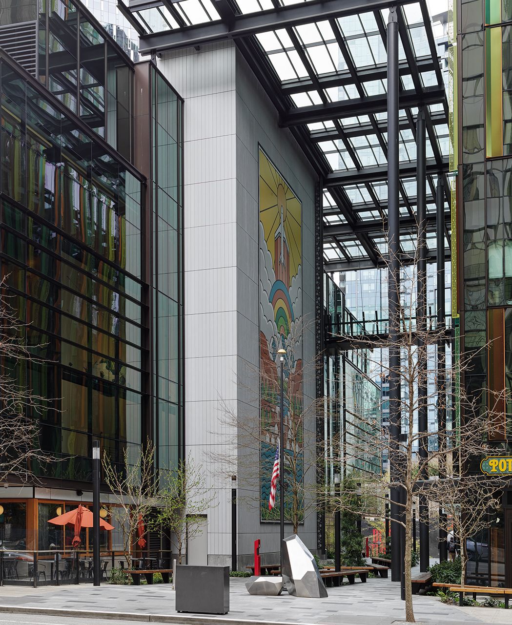 Das Büro- und Geschäftsgebäude in der Kronprinzenstraße wurde revitalisiert und modernisiert. Die Architekten von Willwersch verwendeten für die Gebäudehülle öko skin Latten in green. Die Fassadenelemente aus Glasfaserbeton fügen sich harmonisch in die Umgebung ein. Durch die Kombination unterschiedlicher Oberflächen entsteht ein lebendiges Farbspiel an der Fassade. Fotos: Rasmus Norlander