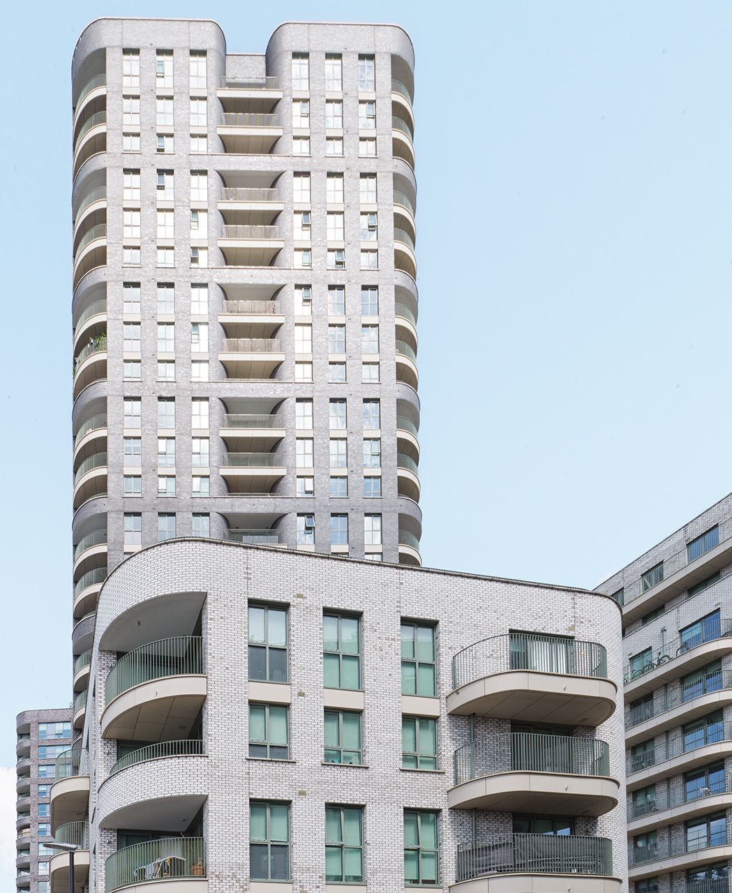 Dem Gebiet rund um Old Oak und Park Royal soll neues Leben eingehaucht werden. Im Fokus lag dabei großzügiger Wohnraum zu bezahlbaren Preisen. Im ersten Schritt entstanden 605 Wohnungen und zusätzliche Gewerbeflächen. Im Erdgeschoss und im ersten Stock befinden sich Gemeinschaftsbüros, Geschäfte, Cafés, ein Gemeindezentrum und ein Kindergarten. Die Ziegelfassade wird durch cremefarbene Glasfaserbeton-Elemente unterbrochen. Auch die Balkonbrüstungen werden mit C-förmigen Formteilen verkleidet, dadurch werden spannende Akzente gesetzt. Fotos: Ditz Fejer