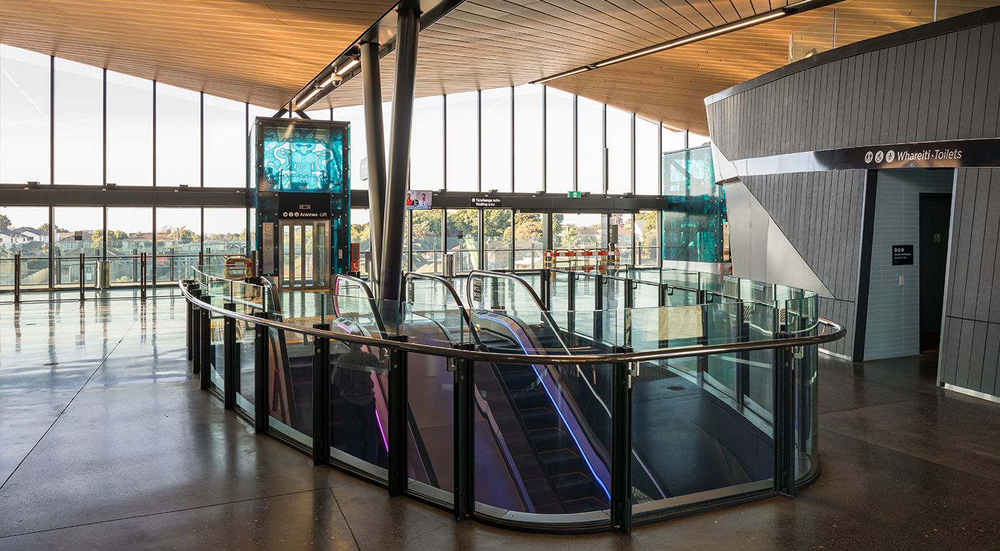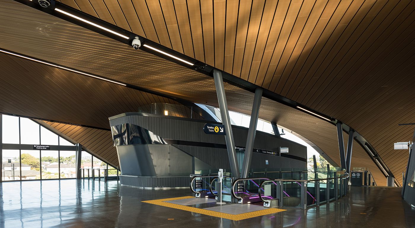 Im Süden von Auckland wurde ein neuer Bahn- und Busknotenpunkt gebaut und dadurch ein neues Tor zur Stadt geschaffen. Das Projekt bietet eine moderne, sichere und wettergeschützte Umgebung, um den Menschen einen einfachen und bequemen Wechsel zwischen Straße und Schiene zu ermöglichen. Glasfaserbeton kam in Innen- als auch im Außenbereich zum Einsatz.