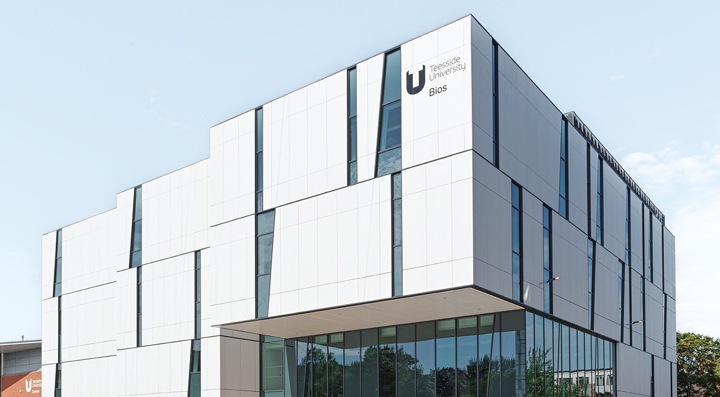 Die Teeside University hat als Erweiterung zur School of Health & Life Sciences ein neues BIOS-Gebäude erhalten. Im Fokus stehen Naturwissenschaften und klinische Fächer, wie Anatomie, Pharmazie, Mikrobiologie oder Chemie. Der vierstöckige, 5.000 m² große Komplex umfasst Labore, Forschungsräume, medizinische Lehrräume uvm. Der hochwertige und flexible Bau wurde so konzipiert, dass während der geplanten Lebensdauer nur ein minimaler Wartungsaufwand erforderlich ist. Daher ist es nicht verwunderlich, dass die Wahl beim Fassadenmaterial auf concrete skin Platten fiel. Die Glasfaserbeton-Elemente überzeugten die Architekten durch robuste, langlebige und wartungsarme Eigenschaften. Fotos: Ditz Fejer