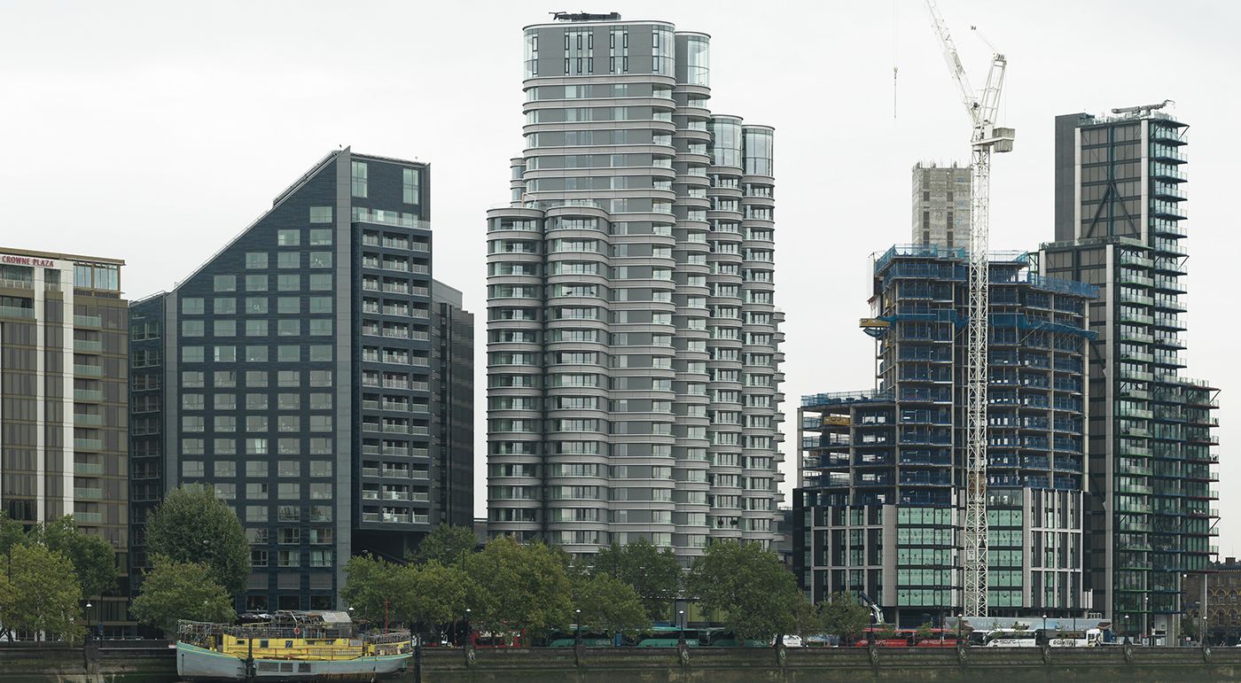 The Corniche besteht aus drei Türmen mit 15 – 27 Etagen am Südufer der Themse, direkt gegenüber den Houses of Parliament. Es bietet Flächen für 253 Wohnungen, Büros, Restaurants sowie eine Bar für Hotelgäste, Fitnessraum, Pool und Spa. Fotos: Ditz Fejer