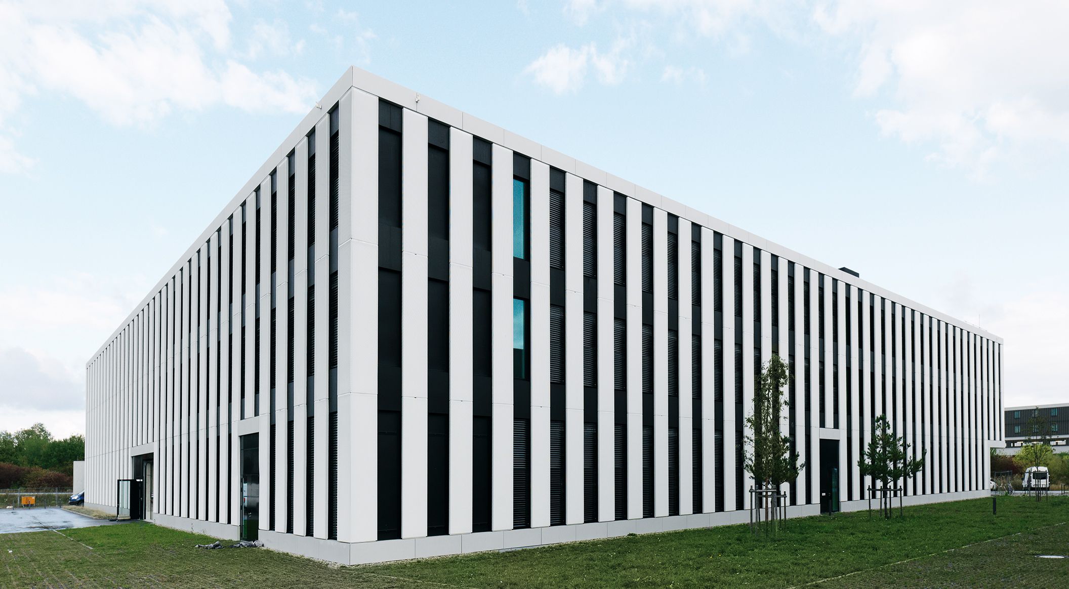 In Sachen Ressourceneffizienz gilt die Universität Augsburg als Spitzenreiter. Auf dem Campus entstand ein weiteres Forschungsgebäude für das Institut für Materials Resource Management. Die Architekten von Code Unique planten den Neubau als kompakten, städtischen Solitär. Durch die Kombination von Streckmetall, verglasten Elementen und farblich abgestimmten Glasfaserbeton erhält die Fassade eine regelmäßig rhythmisierte Optik und eine klare Identität. Die gleichmäßige Abfolge der vertikalen Elemente verleiht der Gebäudehülle ein unverwechselbares Erscheinungsbild. Dünklere concrete skin Platten in chrome setzen gekonnt Akzente zum sonst hellen Baukörper.
