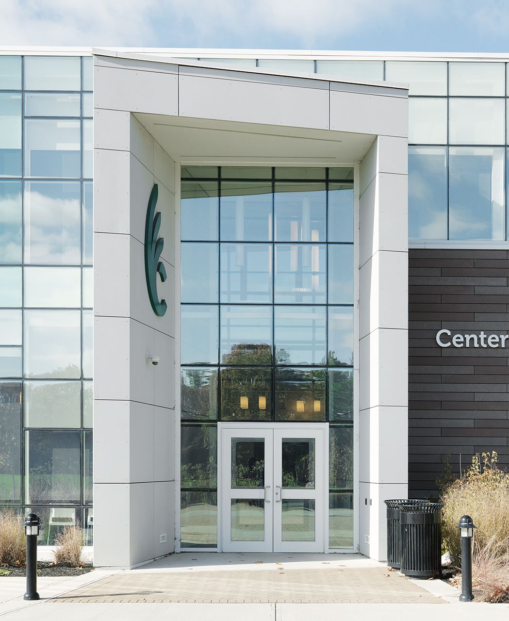 Das Bestandsgebäude wurde um zwei Etagen erweitert. Dadurch bietet das College mehr Platz für Laboratorien und Klassenzimmer. Im gesamten Gebäude befinden sich Gemeinschaftslounges und ruhige Arbeitsbereiche. Für die Fassade verwendete das Architekturbüro The Collaborative öko skin Latten und concrete skin Platten in terra und ivory. Fotos: Ditz Fejer