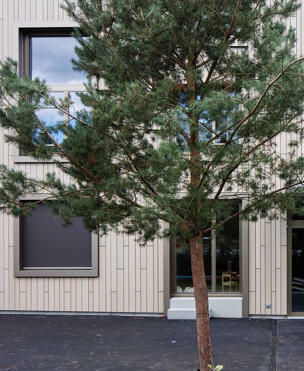 Basierend auf den Prinzipien traumainformierten Designs entstand eine Architektur, die Heilung fördert und den Bedürfnissen von Frauen und ihren Familien gerecht wird. Der einladende Eingang mit geschütztem Überhang, warmer Holzverkleidung, sanften Rundungen und einer langen Gemeinschaftsbank schafft eine Atmosphäre des Ankommens. Das Gebäude beherbergt vielseitige Mehrzweckräume, eine große Gemeinschaftsküche als soziales Zentrum, Kinderbetreuungsplätze und vieles mehr. Fotos: Ditz Fejer