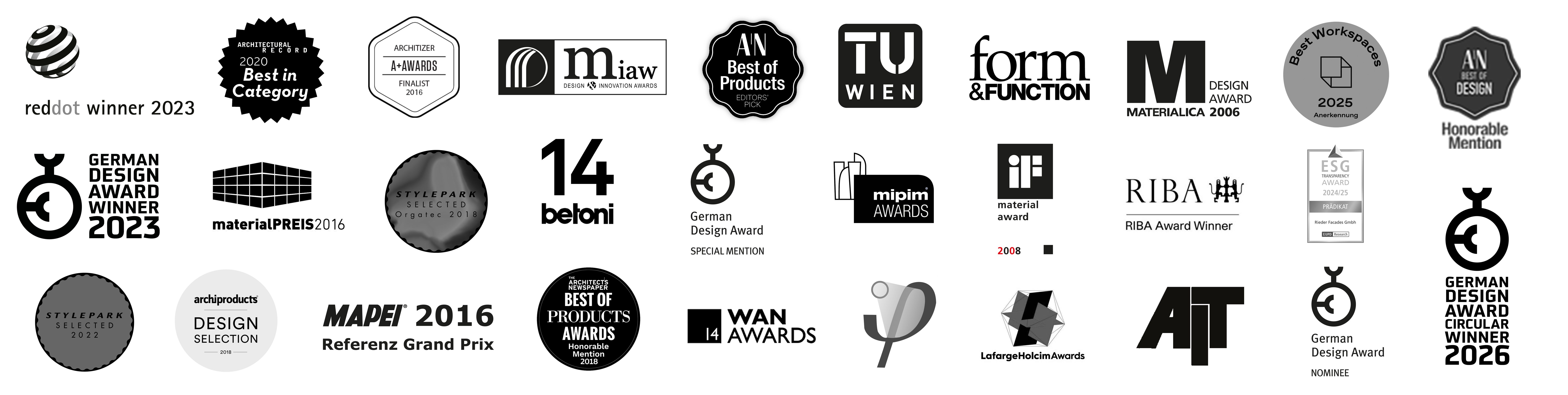 Seit der Einführung der Fassadenprodukte aus Glasfaserbeton im Jahr 2004 hat Rieder seine Produkte laufend erweitert: Das Spektrum reicht von großformatigen dünnen Platten über schmale Latten bis hin zu dreidimensionalen geformten Elementen.
