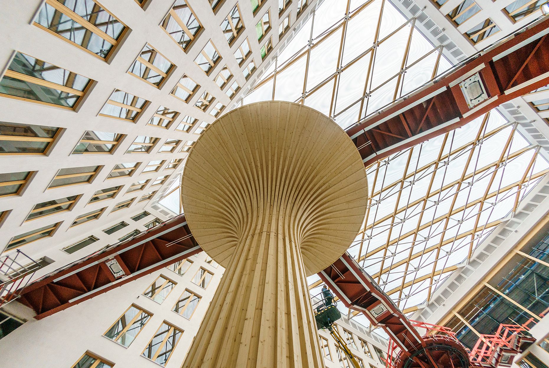 A look behind the concrete skin facade of the project reveals that a new age for real estate development is finally upon us. Germany's largest timber hybrid building shows how the needs of sustainable construction can be combined with many other requirements of a building with 32,000 square metres of floor space.