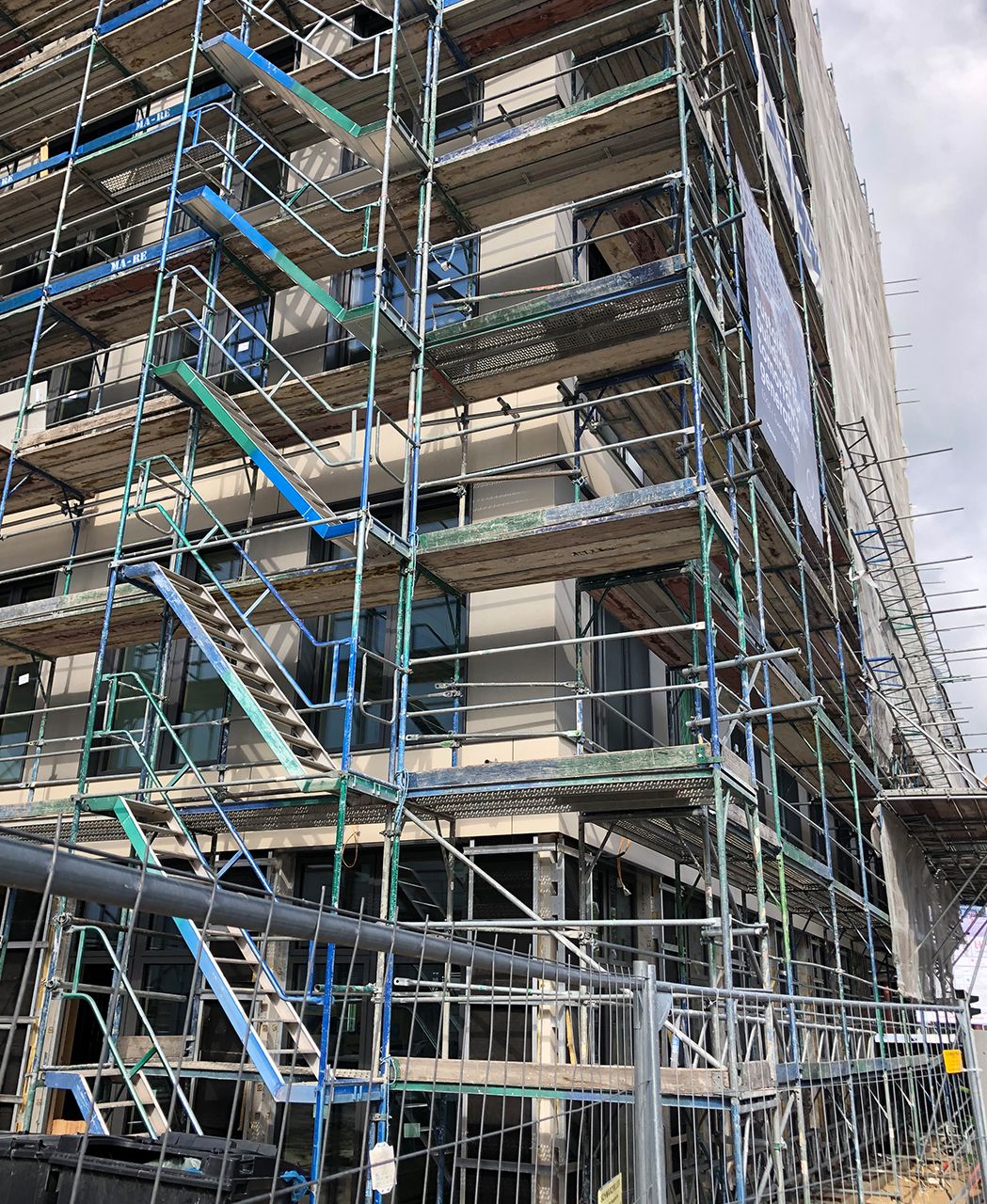 ACMS Architects designed a new building in a modular hybrid construction with 258 living spaces for students in passive house standard. The focus was on reducing construction costs and time, provide affordable housing as well as variable subsequent utilisation. It was possible to reduce construction time by 10 months with a prefabricated shell, a prefabricated facade and prefabricated bathrooms.