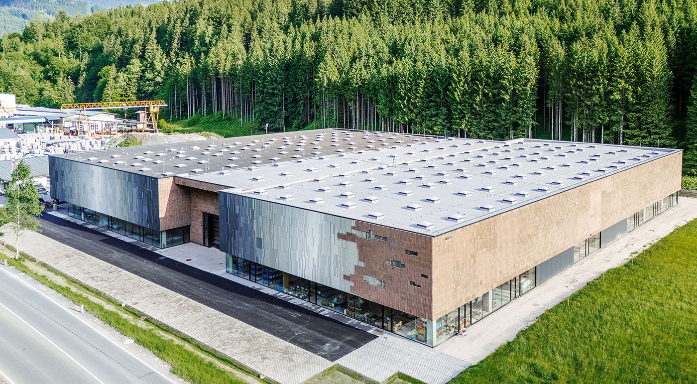 To expand production capacities, a new hybrid hall combining timber and concrete was constructed. This complements the two existing production halls, sets high standards for the future of building and establishes new benchmarks in prefabrication. Over 1,300 m³ of timber were used in the project. To promote regional value creation, local company Höck Holzbau, based in Maishofen, was brought on board. They manufactured the elements directly on a specially designated area at the construction site, enabling rapid progress.
