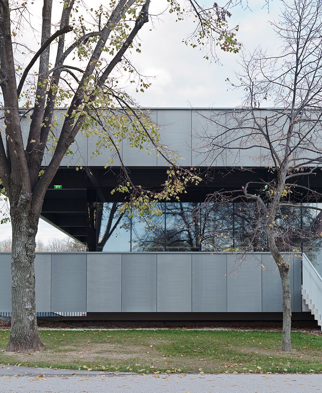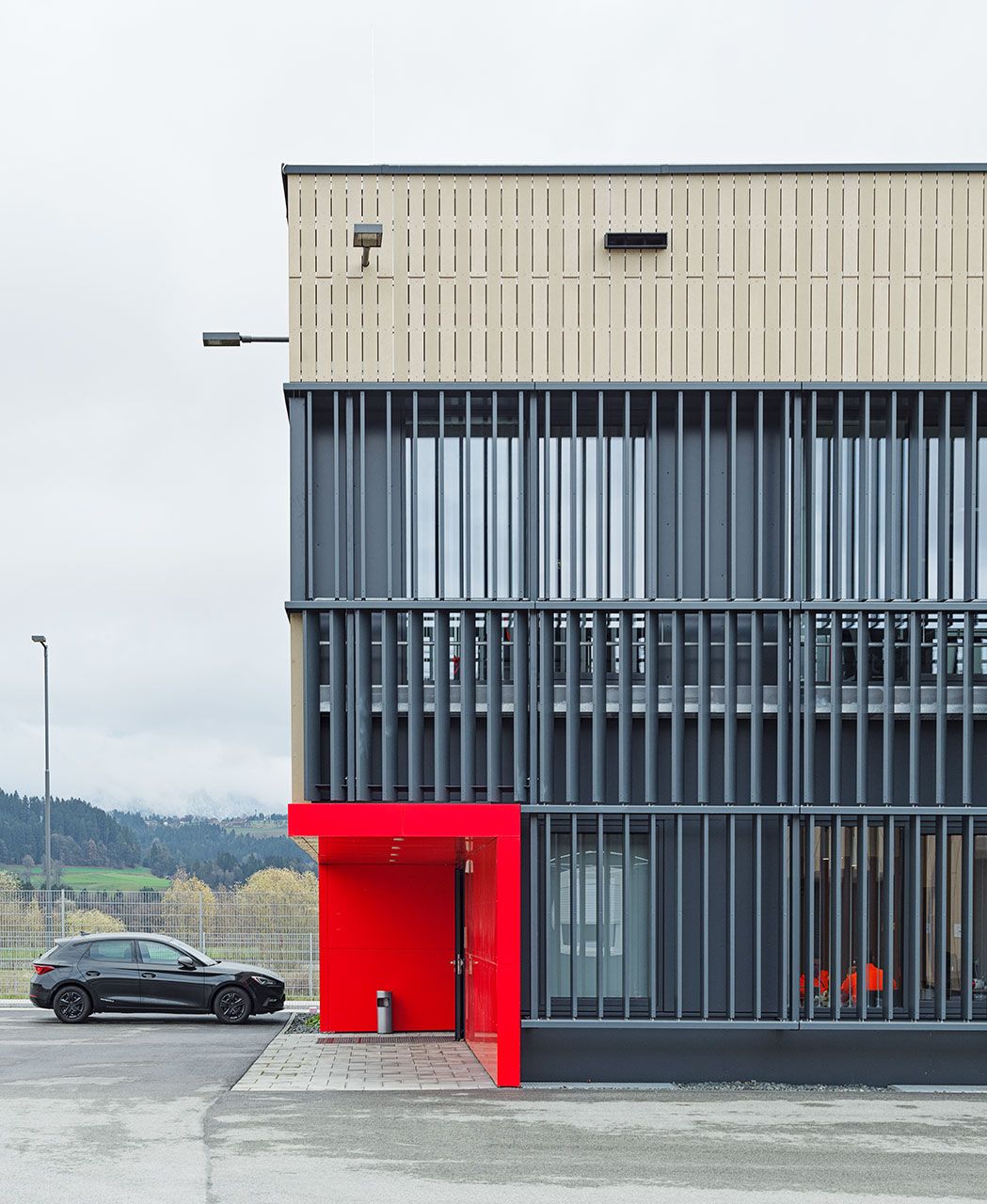 Using Rieder slim concrete elements with an integrated fastening system permits for the first time the use of concrete for element facades. Individual form parts with a U-cross section are used as thin vertical concrete fins to produce a facade with contrasting typologies. Depending on the viewing angle, the facade appears transparent and opaque at the same time, due to the cantilevered concrete fins. The sandstone coloured concrete elements also function as sun protection. With the development of its own fastening system, Rieder made it possible to quickly assemble the 1,300 U-shaped parts made of glass fibre concrete. The pre-assembly of the fixing anchors ensured quick and weather-independent assembly on site. The form parts were simply attached to the substructure and then finetuned. Due to the low weight of the only 13 mm thin elements and the high spans up to 4.25 m, less material was required for the substructure. Photos: Ditz Fejer