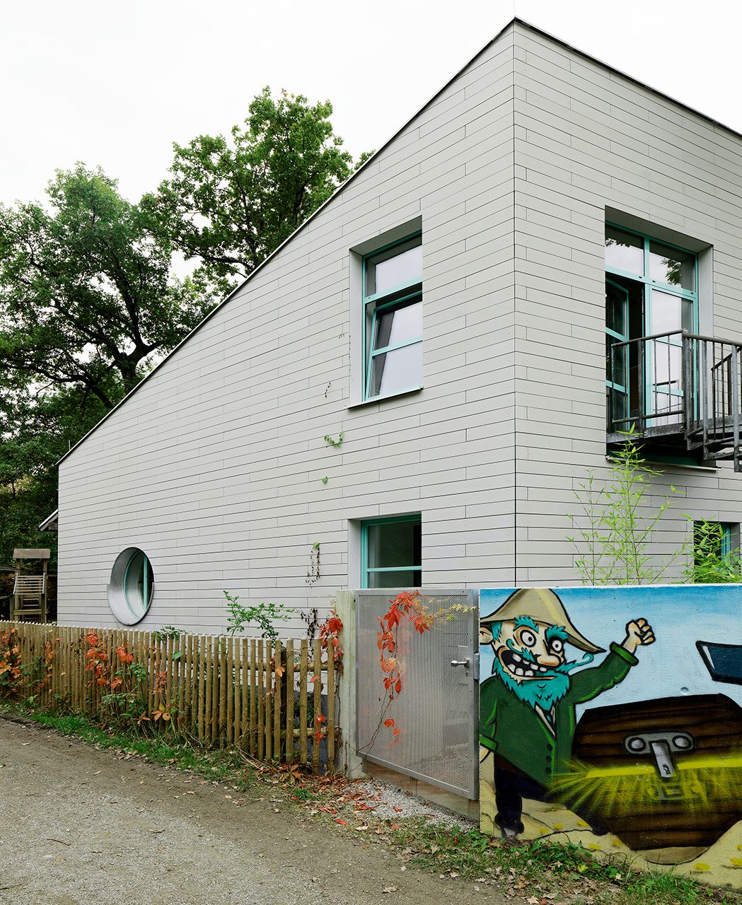 The daycare centre in Haar has been expanded and refurbished, creating much-needed, additional day care spaces. The architect, Jürgen Schebesta, planned the extensive restorations, cladding the facade with öko skin slats.