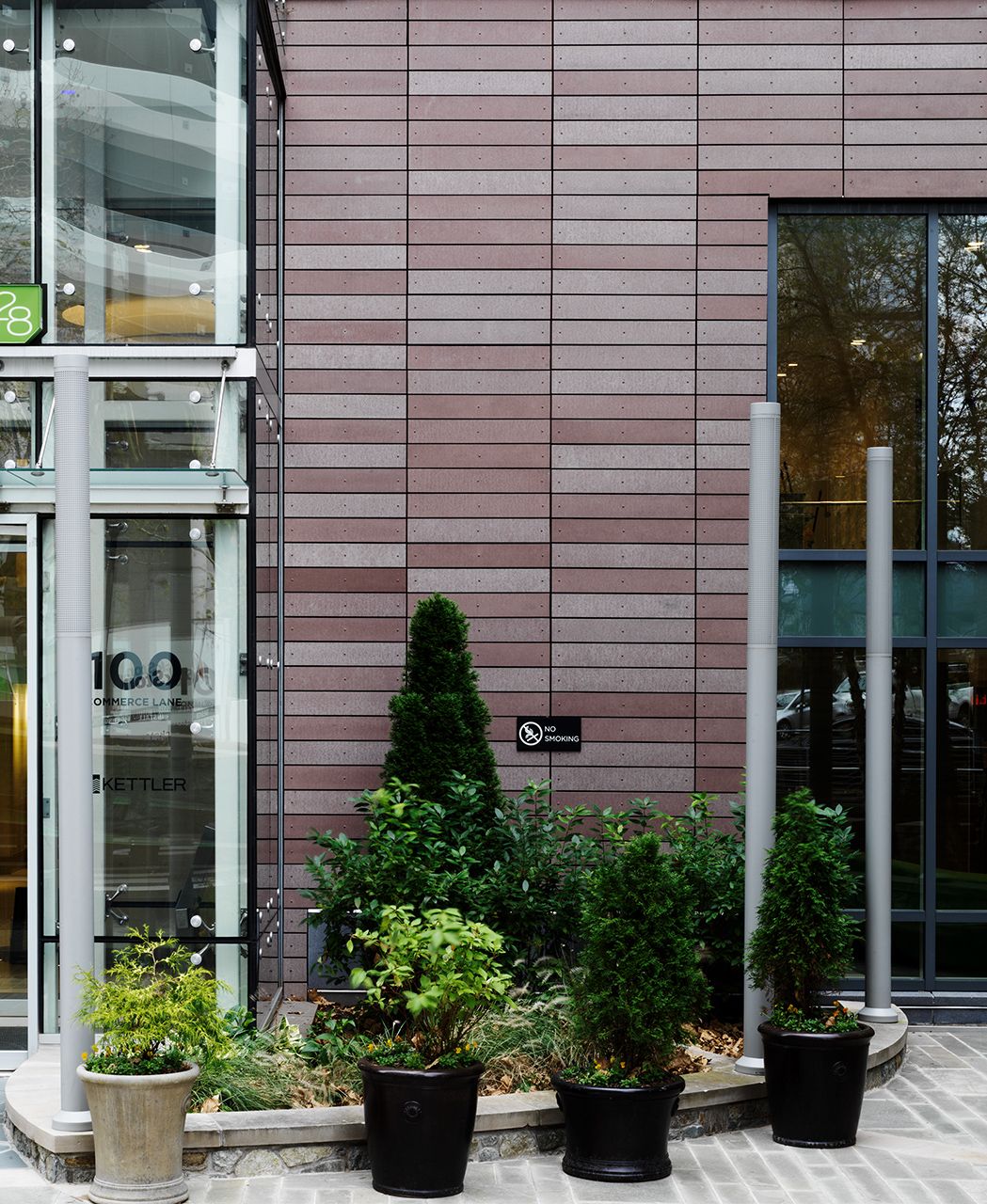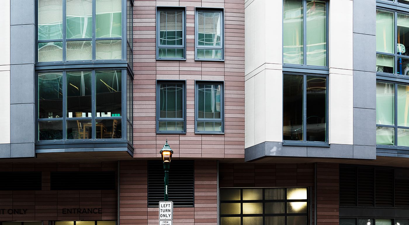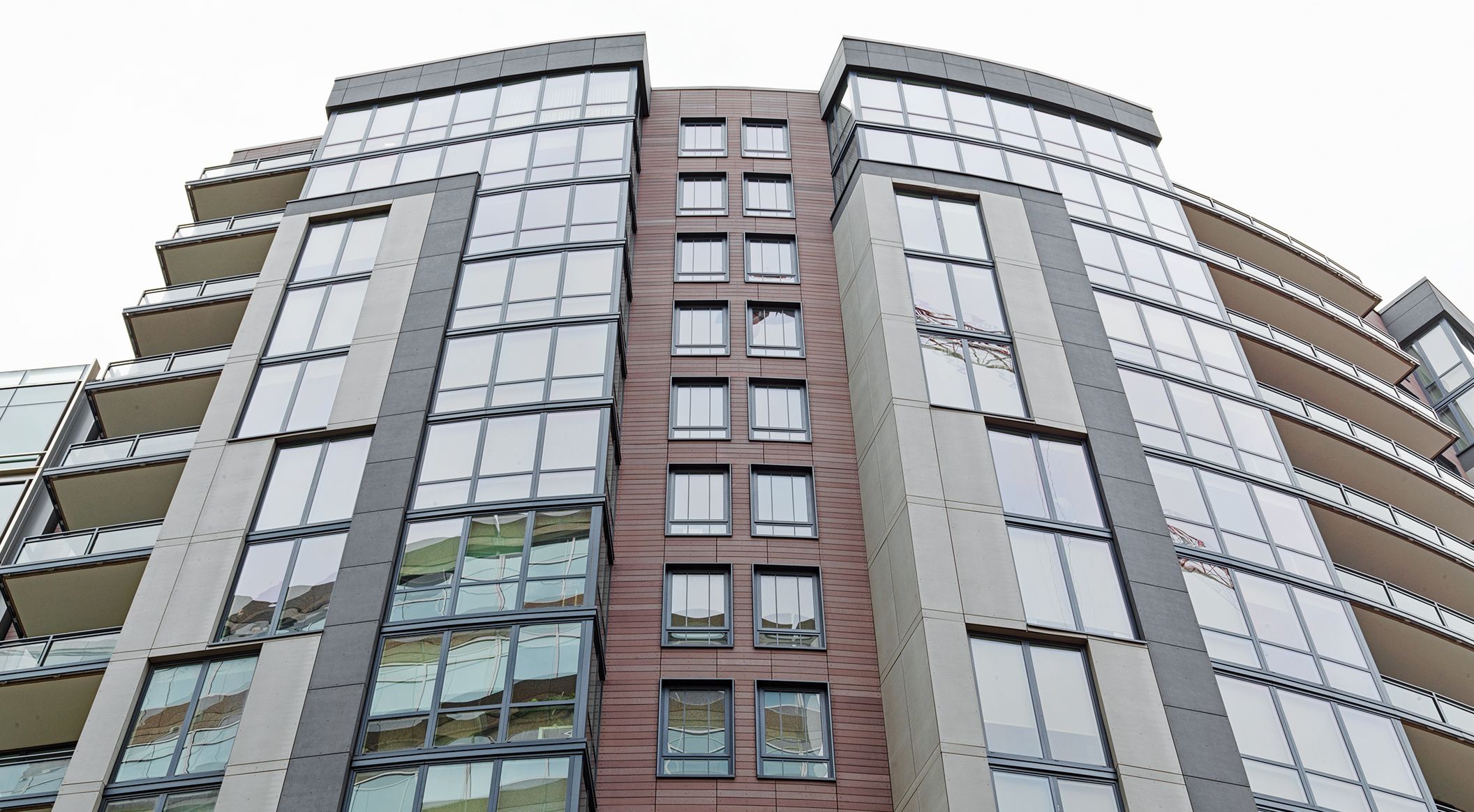 The architects at R2L designed a complex of luxury apartments and spacious retail space on a prominent spot in Bethesda’s main business district. Sustainability is a central theme of the overall concept. The roof terrace was landscaped and a park with water retaining structure is being used for rainwater management. This also significantly reduces the heat-island effect of the high-rise. Parts of the LEED Gold certified tower block were clad with öko skin slats. The glassfibre reinforced concrete elements impress with their robust, ecological, fire-resistant and natural properties. Photos: Ditz Fejer