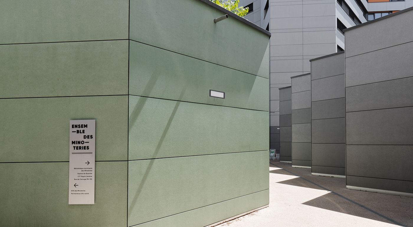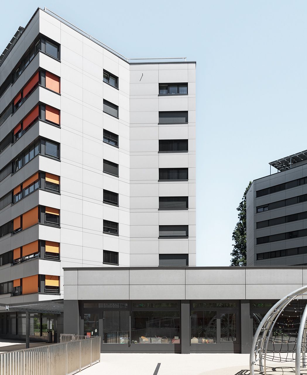 The Swiss Minoteries building complex from the 1970s was renovated, reducing its energy consumption in line with current standards. To preserve the character of the buildings, concrete skin panels were used for the facade. The glassfibre reinforced concrete elements reinterpret the original 70s charm of the complex and bring it into the architectural here and now. Photos: Ditz Fejer