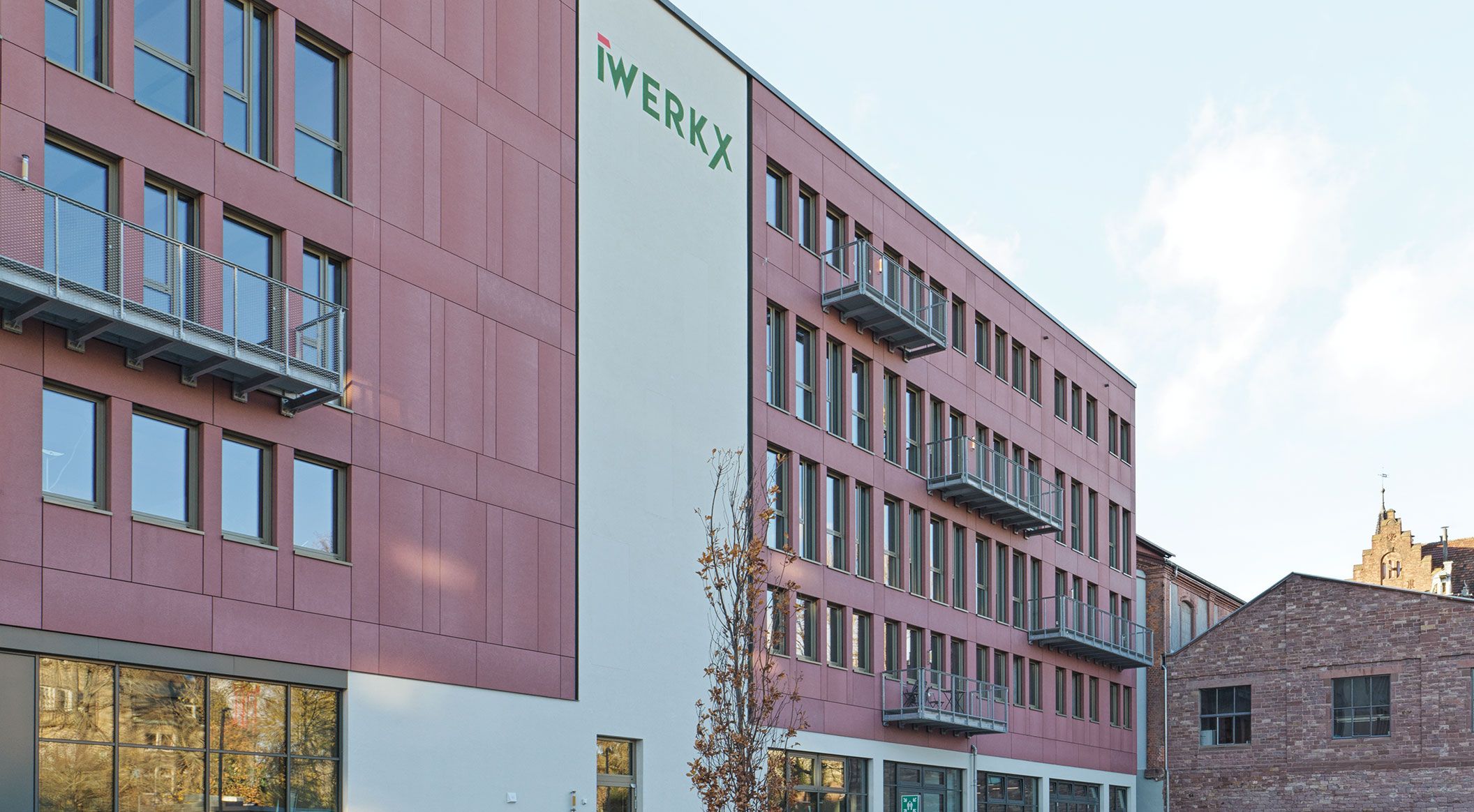 The iWerkX innovation centre in Karlsruhe is dedicated to Industry 4.0, providing space for workshops, production areas, and collaboration zones. The facade design echoes the form and material language of the original hall, reinterpreting it in a contemporary way. This creates a seamless connection to the past while ensuring both recognisability and a sense of familiarity. In their search for a lightweight material that would recall the sandstone-red facade of the historic building while meeting the highest fire safety standards, the architects chose Rieder. The building was clad with over 1,800 m² of concrete skin panels in oxide red. Photos: Ditz Fejer