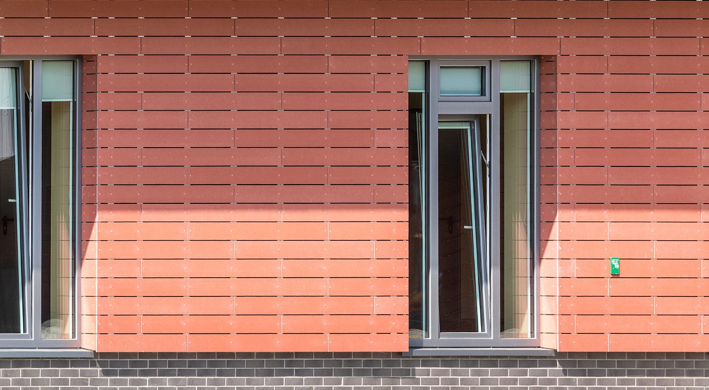 The modern multifunctional educational facility is designed to positively support children’s learning and play. The architects at Eksploit used öko skin slats in terracotta and chrome for the building envelope. The 13 mm thick facade made of glassfibre reinforced concrete means that the outer shell meets the high standards of educational establishments in terms of fire protection, durability and low maintenance. Photos: Exterus