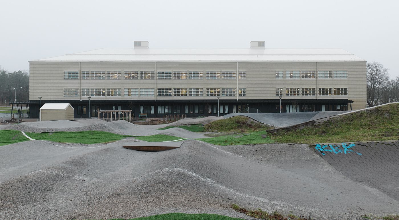 Another building was constructed for the Johan Skytteskolan primary school. The new complex has room for 630 pupils. The building envelope was clad with concrete skin panels in sahara, sandstone and liquid black. A special feature of the facade is that the panels overlap like clapboard slats. Photos: Ditz Fejer