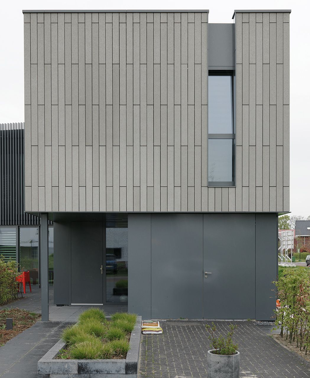 The villa was designed by Been and Boon Architects from Rotterdam. The facade consists of vertically placed öko skin slats in silvergrey. Photos: Ditz Fejer