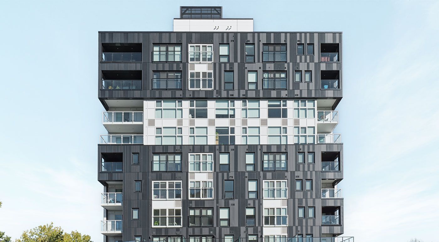The 17 West residential and commercial building impresses with its modern design, seamlessly integrating into the neighbourhood. The new development combines urban comfort with contemporary luxury. The robust concrete construction provides excellent soundproofing, durability, and energy efficiency, ensuring a quiet and comfortable living environment. The amenities are enhanced by spectacular views of downtown Calgary and the Rocky Mountains. Various shades of grey add stylish accents to the facade. Photos: Ditz Fejer