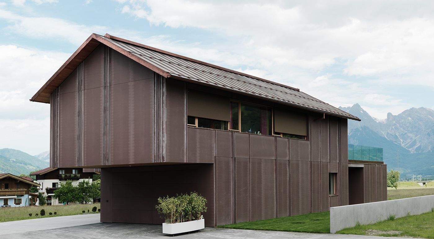 The two-family house in Maishofen by Kessler is regarded as a showcase project for energy production. The concrete facades, created with only 13 mm thin concrete skin, were thermally activated. The aim is to provide architects and builders with an intelligent facade that is enriched by a system of heating and cooling, but which is not restricted in terms of aesthetics, design freedom, and economy. Photos: Lukas Schramm, Ditz Fejer