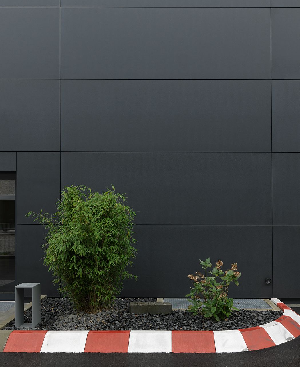 The new company building was clad with concrete skin panels in anthracite, lending the facade an elegant and timeless appearance. The dark colour tones give extra emphasis to the premium corporate concept. Photos: Ditz Fejer, Henning Koepke