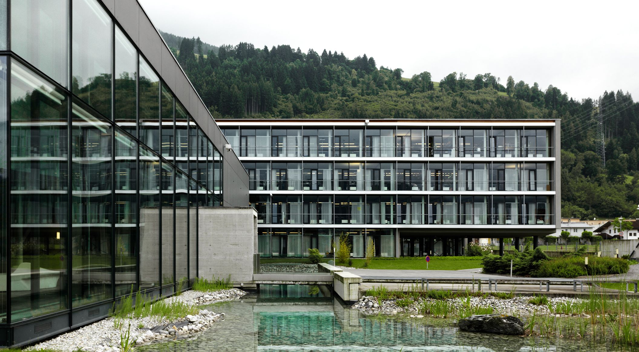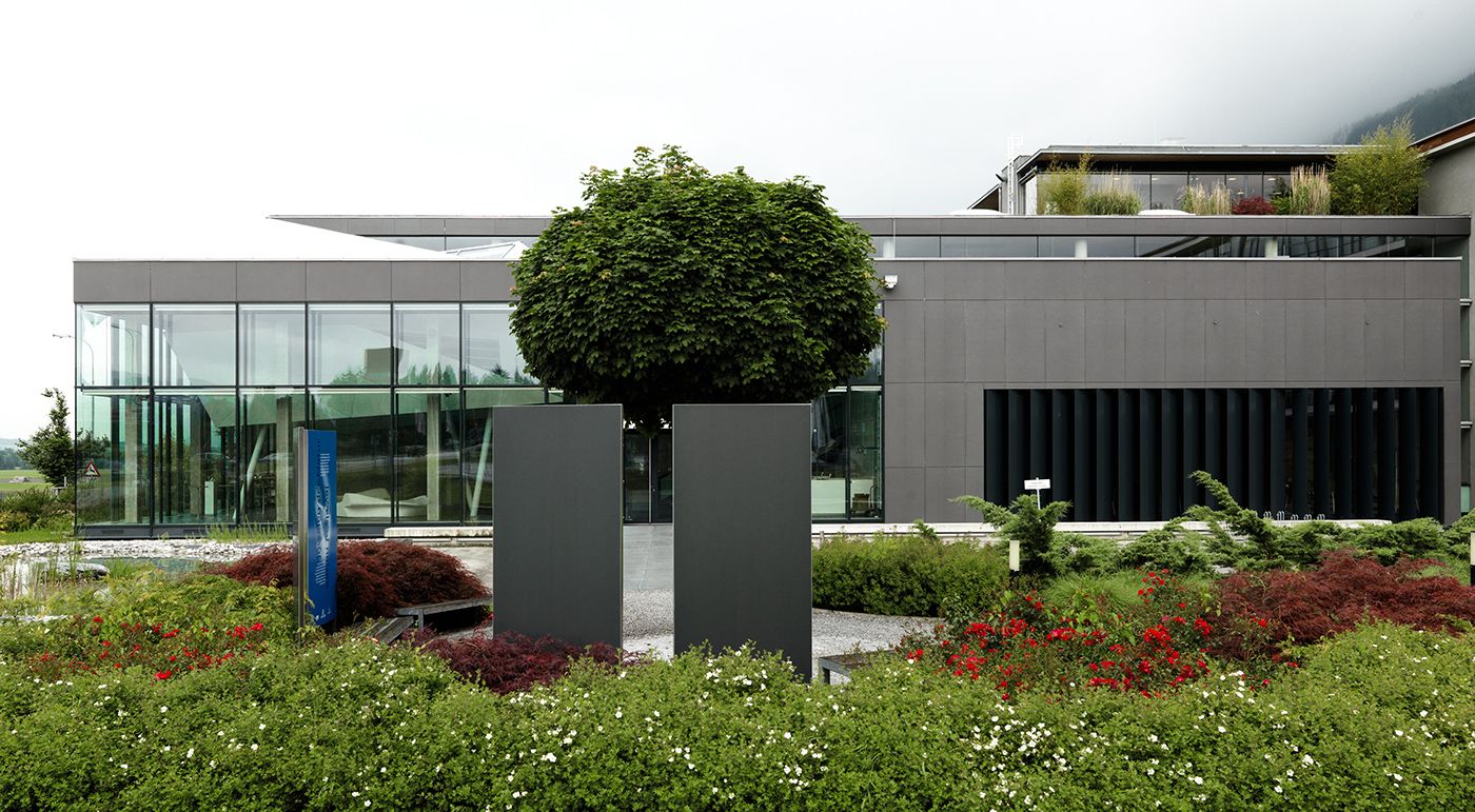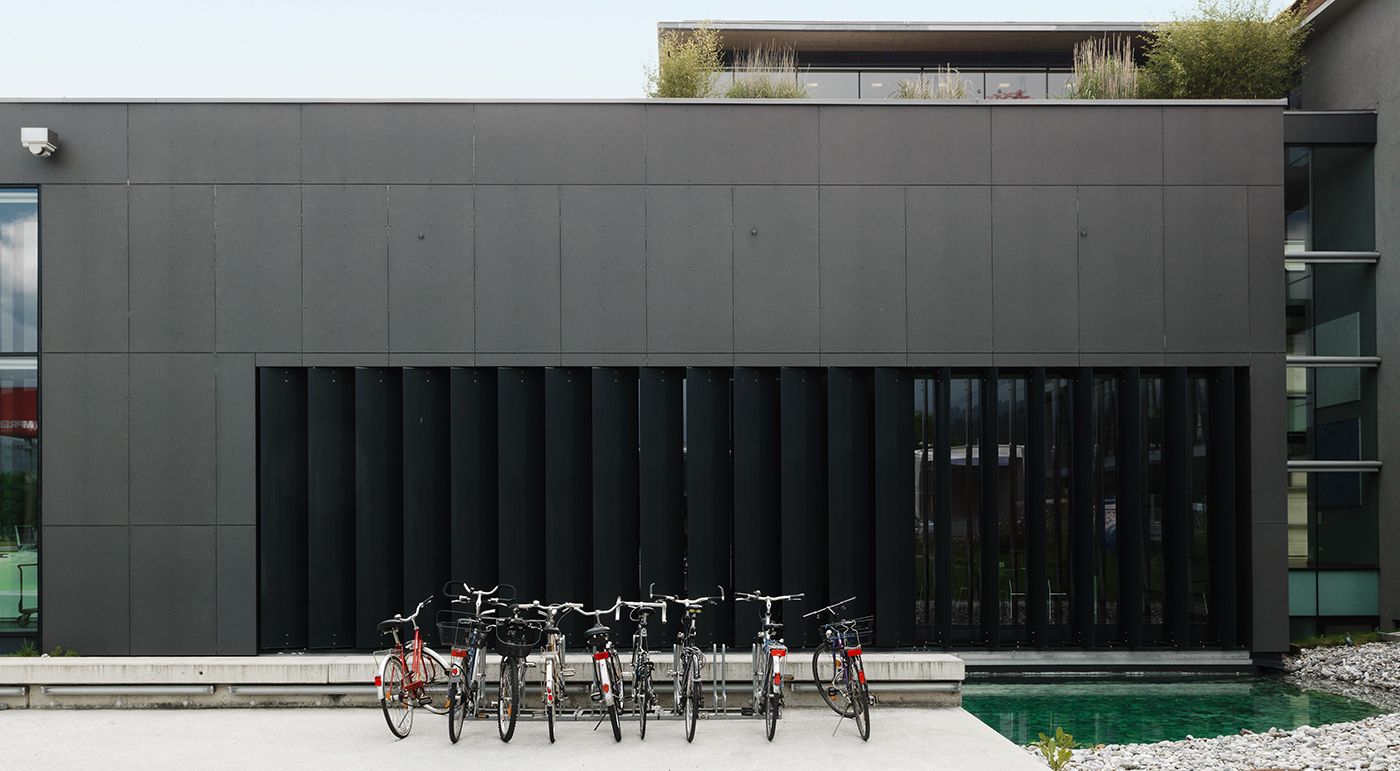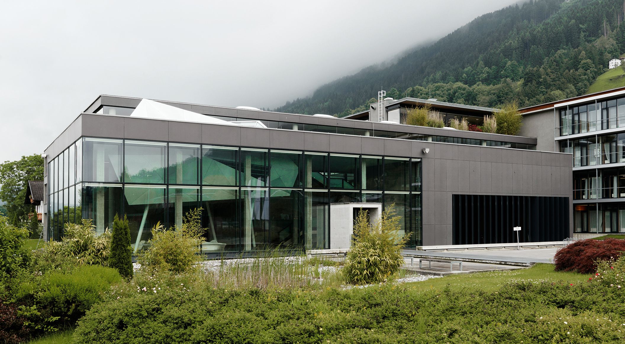 A new office building was planned for the Swarovski Crystal Worlds. The concrete skin panels in anthracite lend the facade an elegant and timeless shell. The glassfibre reinforced concrete elements are a perfect match for the concept of the well-known jewellery and crystal company. Photos: Ditz Fejer