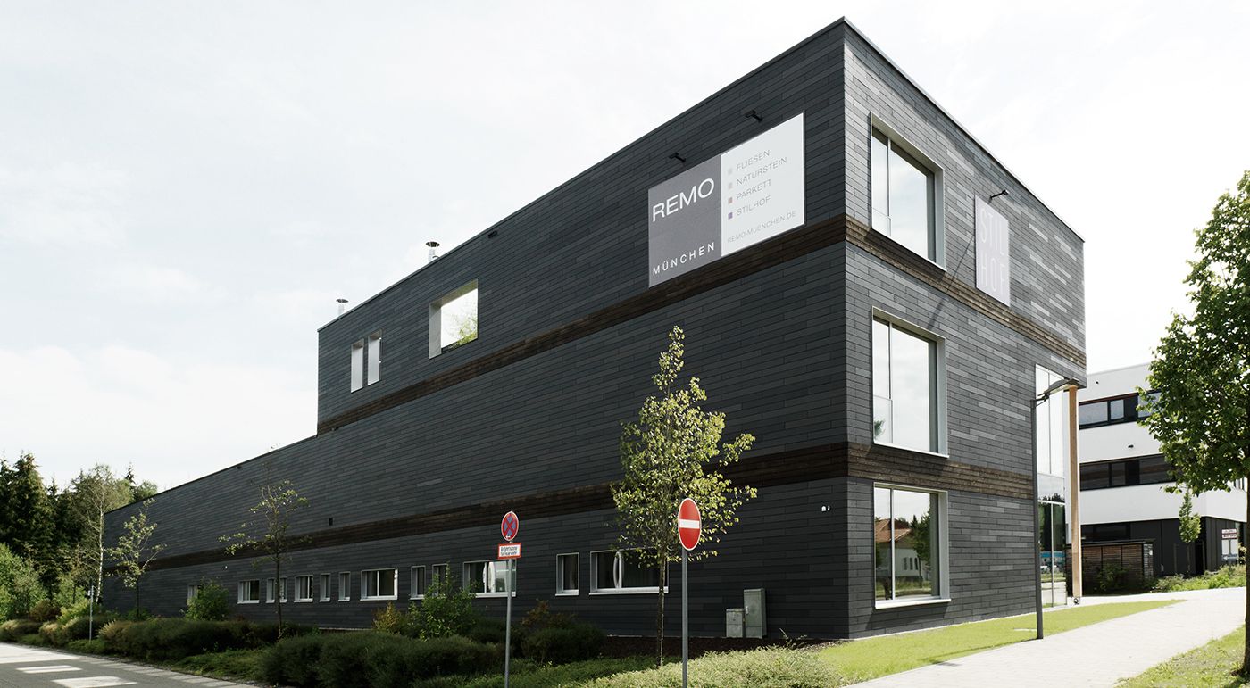 The Stilhof in Brunnthal offers space for ideas and a stage for special events. From the outside, the black monolith gives off a feeling of mystery. The dark öko skin facade envelopes the 1800 m² exhibition area in the suburb of Munich. Through the combination with wood, the building stands out clearly from the surrounding commercial halls. Photos: Ditz Fejer