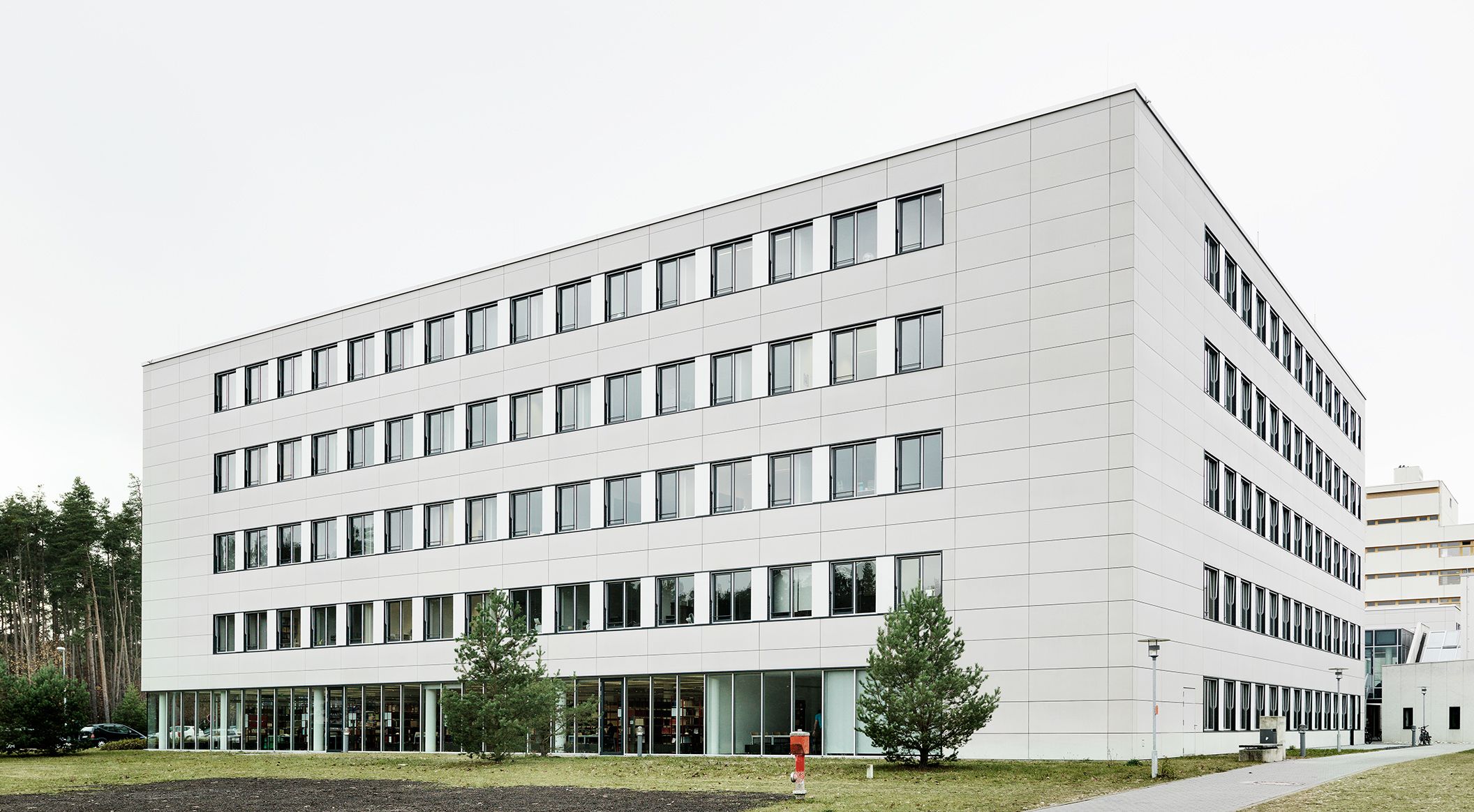 The new building continues the building structure prevailing on the campus. It is divided into 3 components: the Institute of Computer Science in the southwest, the Institute of Mathematics in the southeast, and, as a link, the lecture hall area with shared seminar rooms, which forms a “lecture hall centre” with the existing building 119, which also allows holding congresses and symposia. Photos: Ditz Fejer