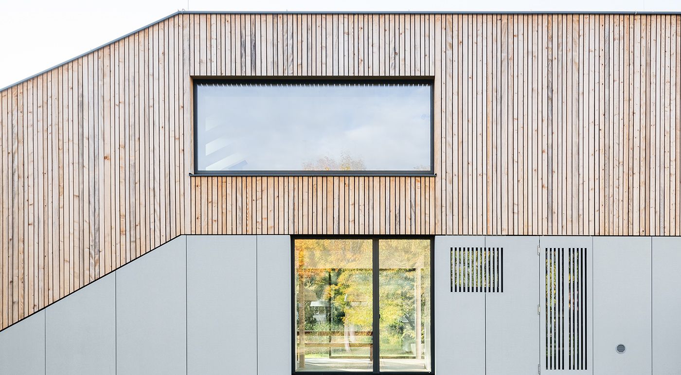 There is a private house on the southern edge of the Vienna Woods. It is a narrow two-storey building. The top floor of the wooden building was clad with vertical silver fir battens. For the lower facade, the architects used glassfibre reinforced concrete elements, creating a solid-looking building base. The combination of wood, concrete and large windows gives the exterior an exciting new look. Photos: Lukas Schaller