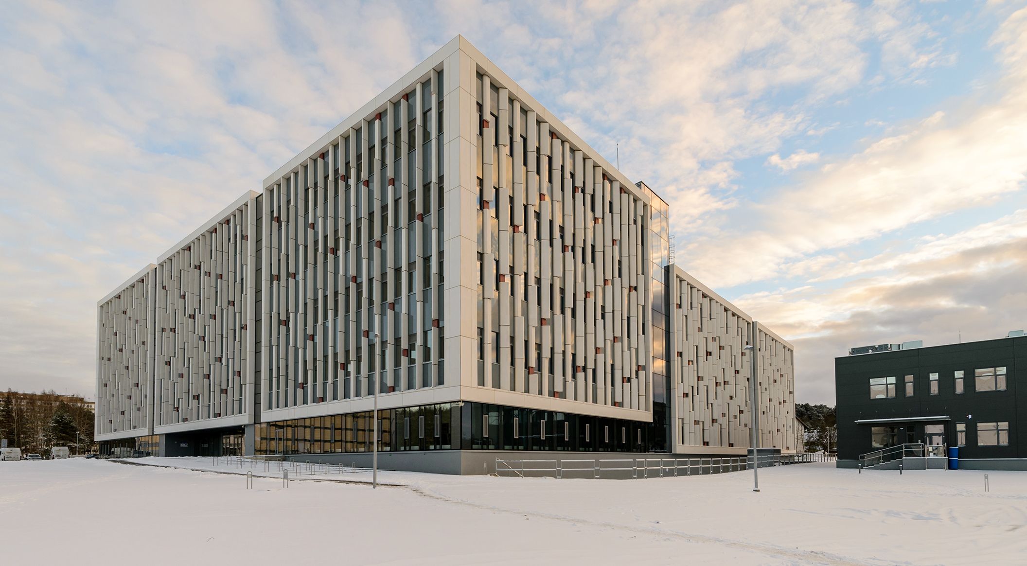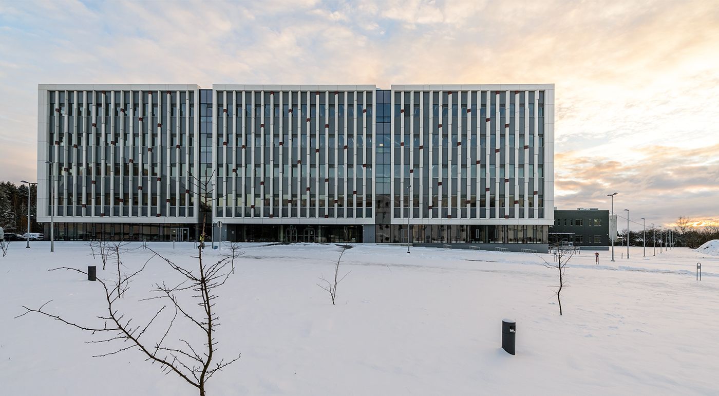 For the design, architect Gintaras Čaikauskas drew his inspiration from scientific technology and the vertically towering pines surrounding the imposing complex. The facade with its vertical columns is reminiscent of human DNA strands. Photos: Rasmus Norlander, Martynas Slapsys
