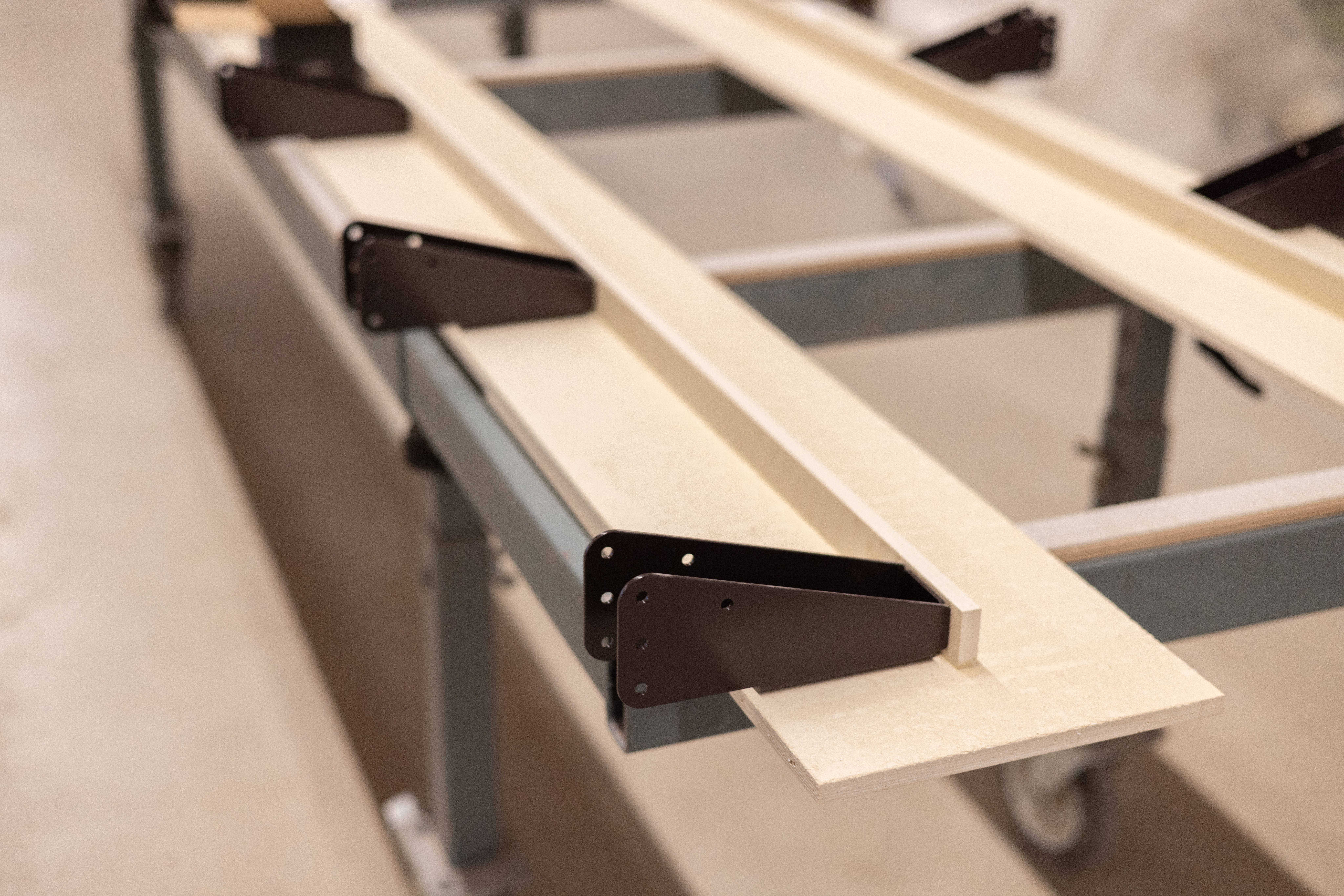Autre avantage : l’aspect reste homogène de l’intérieur vers l’extérieur, car le matériau est visible des deux côtés. Il n’y a pas de face technique comme c’est souvent le cas avec les solutions classiques. Par ailleurs, la structure ouverte en lamelles agit comme une protection solaire naturelle, assurant un éclairage optimal, une atmosphère agréable et une bonne circulation de l’air à l’intérieur.