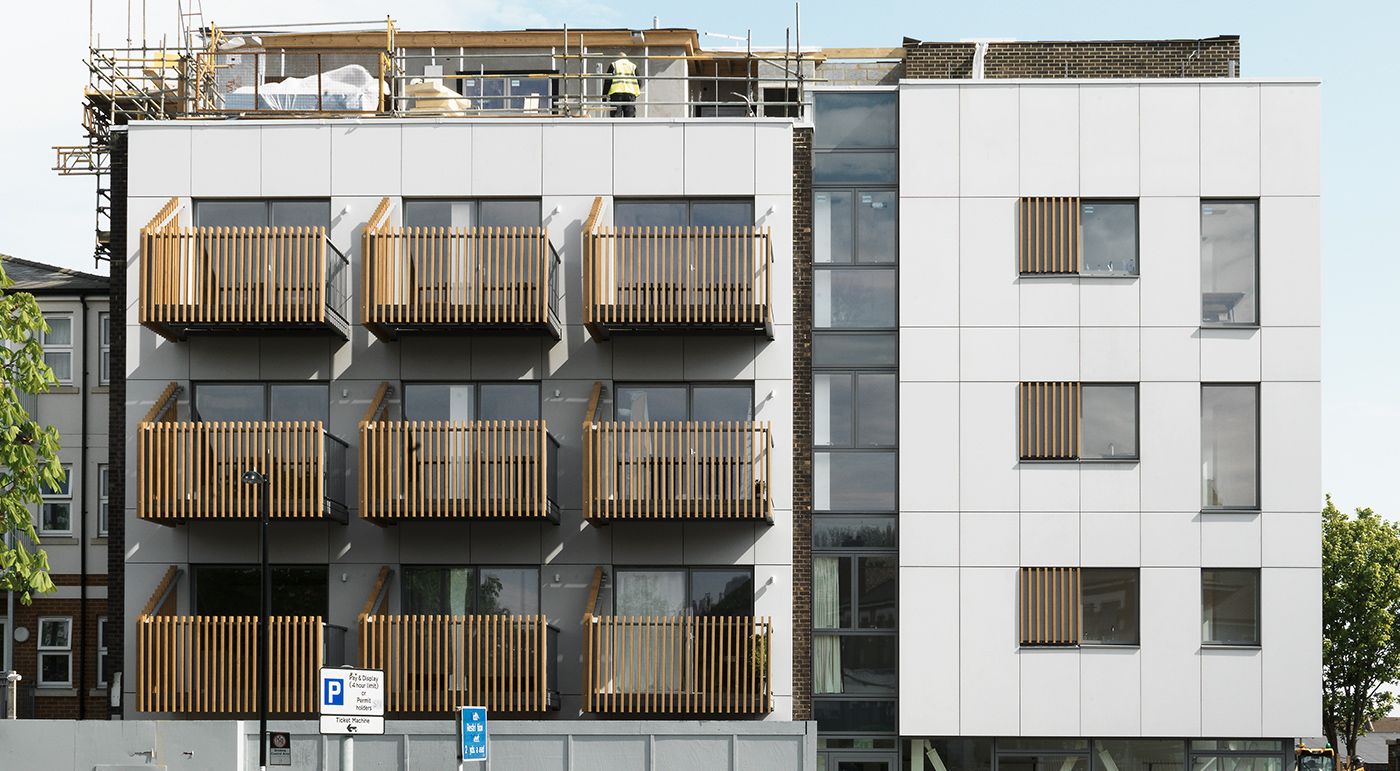 Alma-Nac a converti le bâtiment en béton des années 1960 en 43 unités résidentielles. La façade avec des balcons angulaires a été réalisée en bois et en béton. Dans le même temps, elle offre une intimité entre les appartements adjacents et permet une vue dégagée au sud-est. Photos: Ditz Fejer