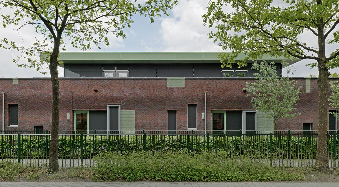 Les architectes de DMV ont utilisé des plaques en peau de béton, teinte green pour la nouvelle école de Waalre. Photos: Ditz Fejer