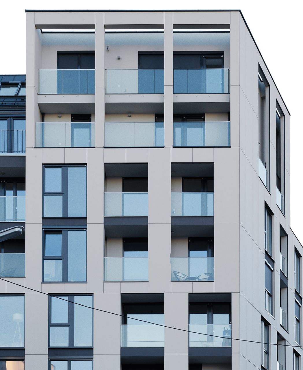 Bien situé, directement dans la zone piétonnière de la Favoritenstraße dans le 10ème district de Vienne, un nouvel édifice en forme de U a été bâti sur une surface de 8 000 m². Ce quartier est particulièrement attractif en raison de ses bonnes liaisons de transport et des multiples possibilités de shopping. La station de métro n’est qu’à quelques mètres et relie directement le quartier au centre-ville de Vienne. L’ouvrage offre suffisamment de place pour des surfaces résidentielles et professionnelles sur huit étages et trois niveaux de sous-sol. L’enveloppe du bâtiment a été revêtue de plus de 1 000 m² de plaques de concrete skin en sahara et se fond harmonieusement dans les bâtiments environnants. Photos: Ditz Fejer