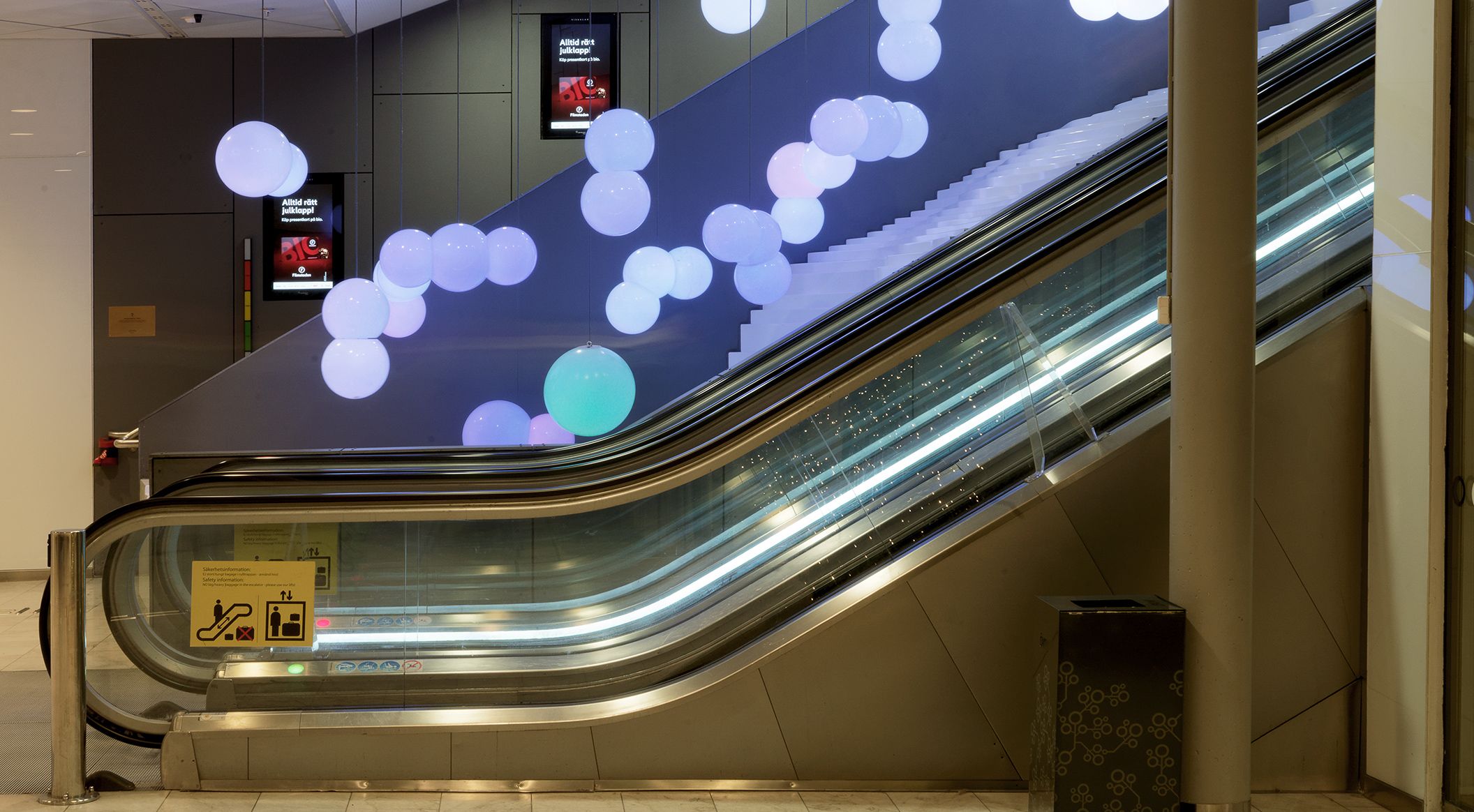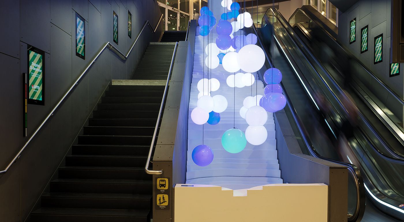 La gare centrale de Stockholm est la plus grande gare de Suède. À l’intérieur, certaines parties ont été revêtues de plaques en voile de béton de couleur anthracite. En combinaison avec des lampes de couleurs différentes, cette zone a un effet apaisant sur les voyageurs. Photos: Ditz Fejer