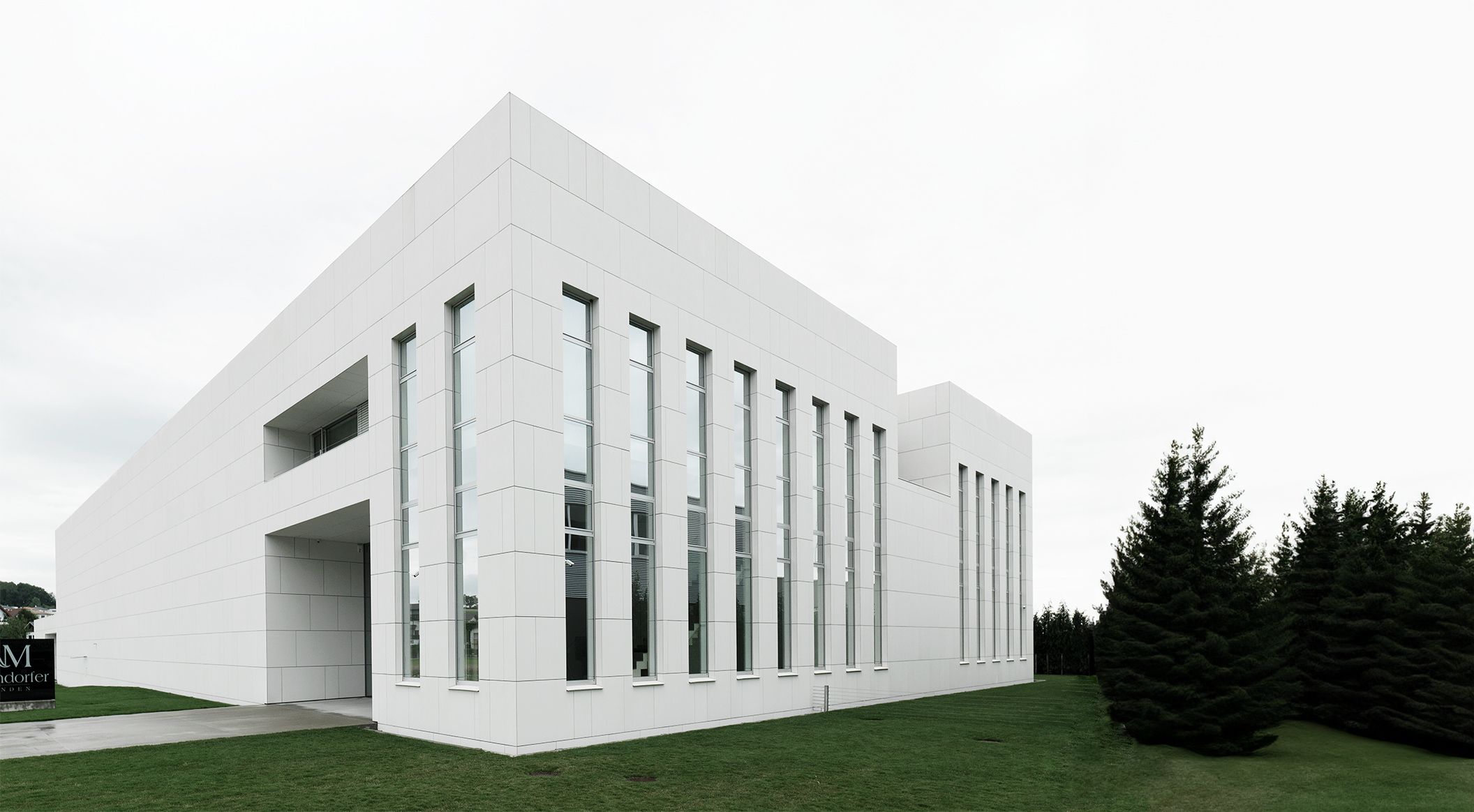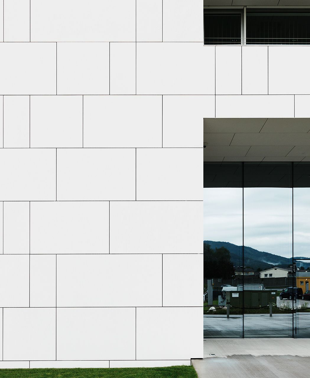 Le nouveau bâtiment de bureaux, de stockage et de production du spécialiste en fruits secs GM Pesendorfer a été conçu et réalisé par Spießberger Bau. La totalité de l’enveloppe extérieure du bâtiment a été habillée de fibrobéton blanc. Photos : Ditz Fejer