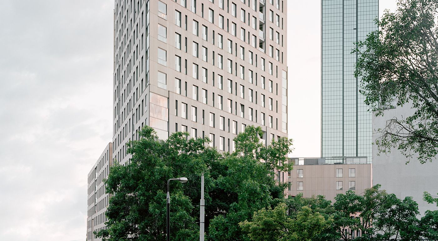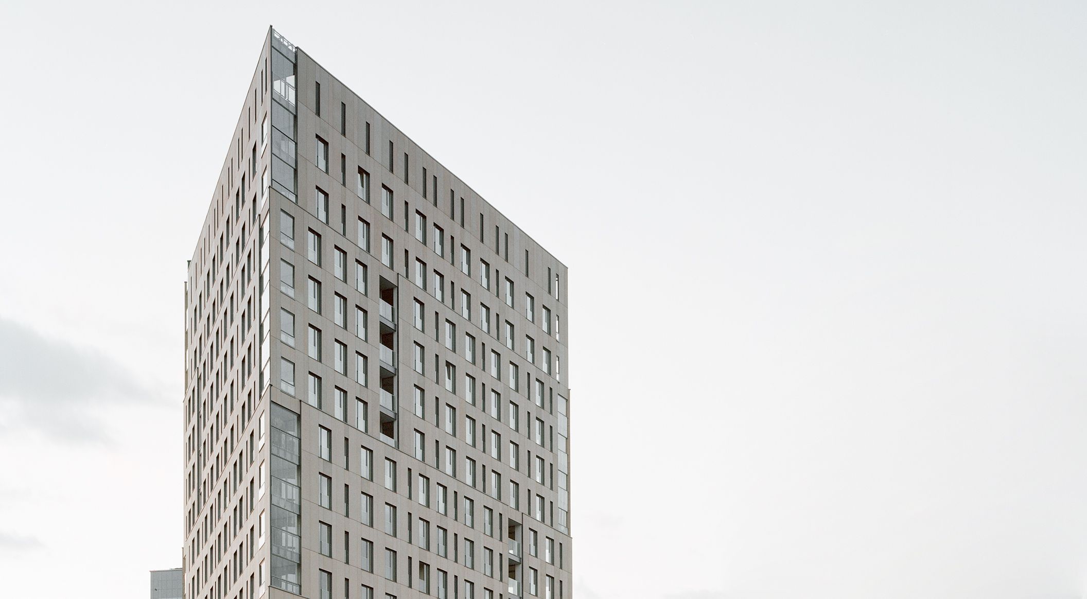 Les architectes de JEMS ont dessiné cet immeuble d’habitation en s’inspirant des tours d’habitation des grandes métropoles. Son contour triangulaire convergeant en pointe donne à l’immeuble son caractère particulier et rompt avec la forme classique. Les éléments en béton aux fibres de verre de Rieder conviennent parfaitement à ce projet grâce à leurs grands formats et à leurs couleurs naturelles. Photos: Rasmus Norlander