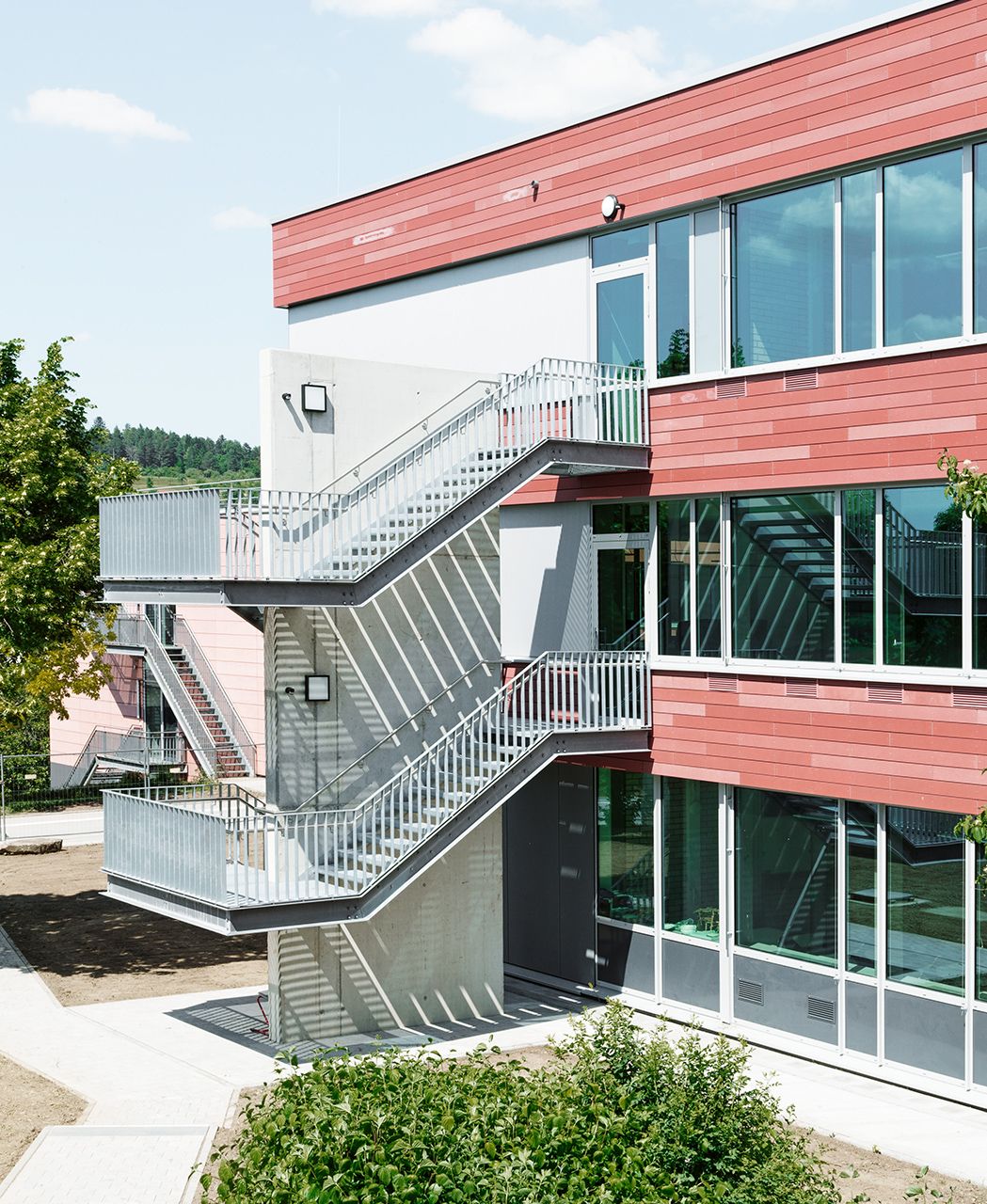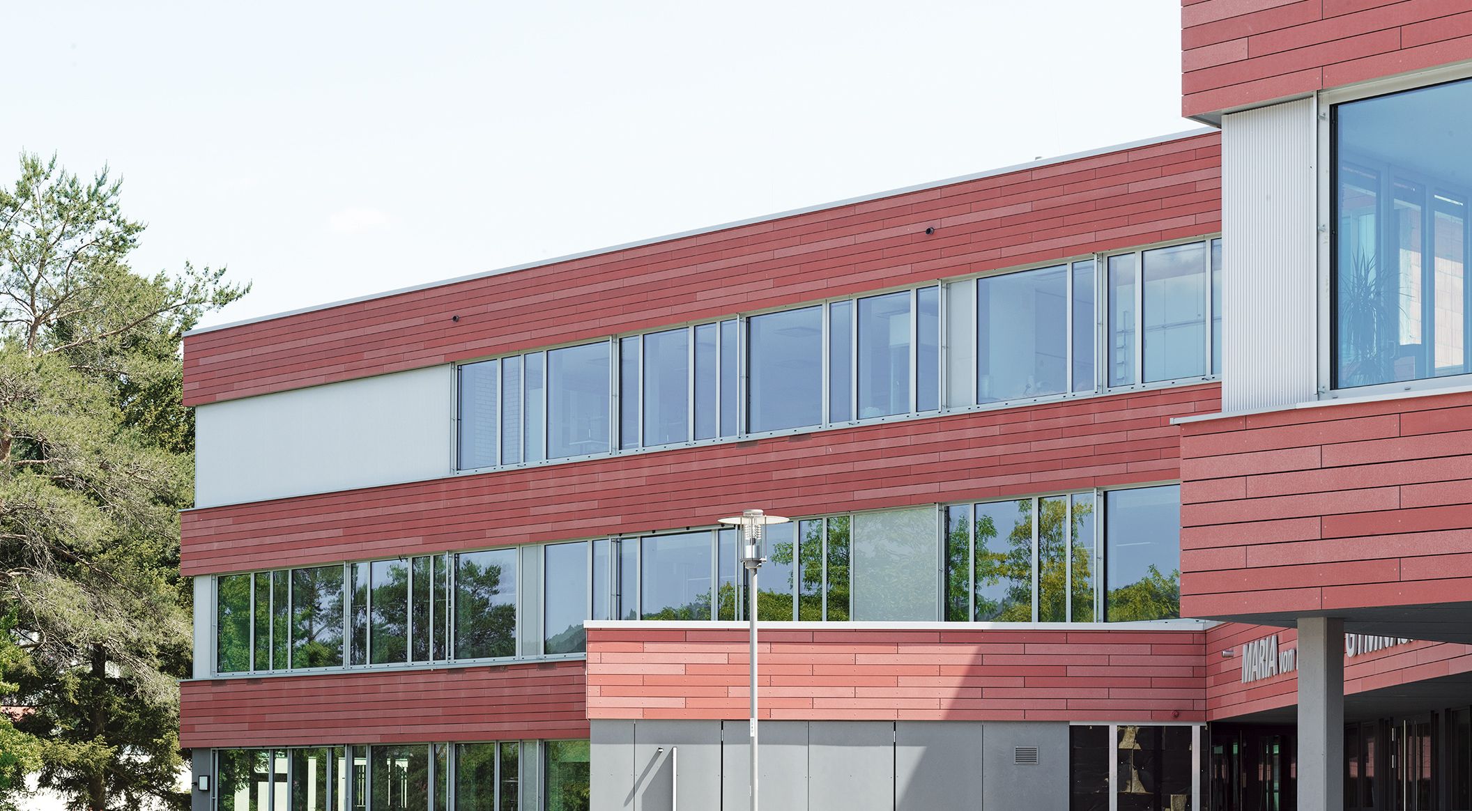 Le lycée Maria von Linden de Calw a bénéficié d’une rénovation intégrale sans interruption de l’activité scolaire. Les architectes de 21-arch ont opté pour des lattes durables öko skin en terracotta. La teinte rouge pétillante confère à l’enveloppe extérieure un aspect vif et rappelle l’atmosphère des anciennes maisons en briques. Photos: Ditz Fejer