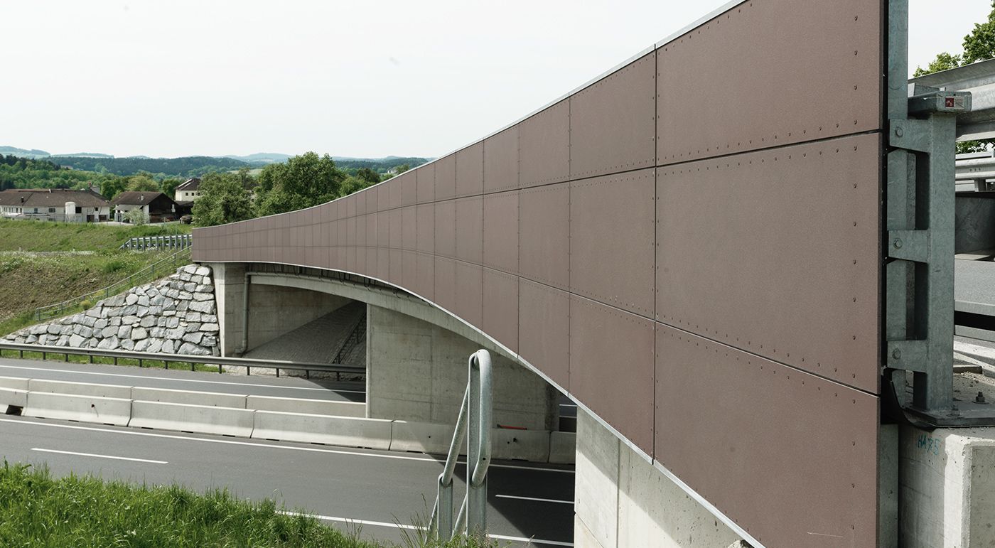 Des panneaux de façades de Rieder ont été choisis pour le projet routier. Les entrées du tunnel, les garde-corps du pont et les guérites d’entretien ont été revêtues de plaques de voile de béton de couleur terra, en partie perforées. Photos: Ditz Fejer