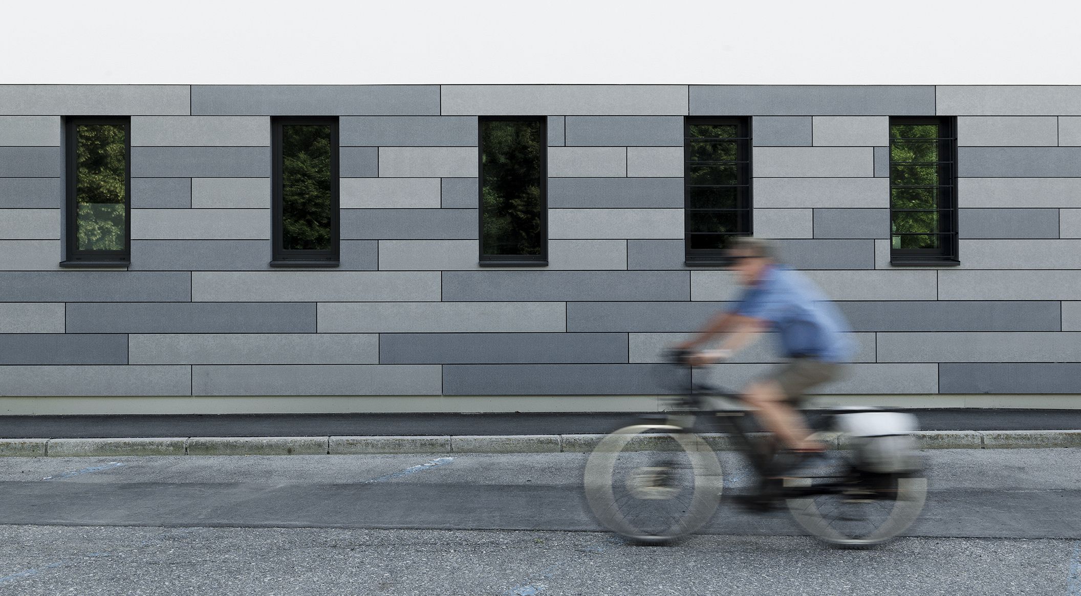 La société d'architectes Griessmann Scherzer Mayr a planifié la rénovation du bâtiment d'exploitation. Pour le socle inférieur, des revêtements écologiques et des pièces en forme de lattes ont été utilisés. Les éléments en béton de fibre de verre se courbent gracieusement autour des coins et des bords, offrant une image harmonieuse. Photos : Ditz Fejer