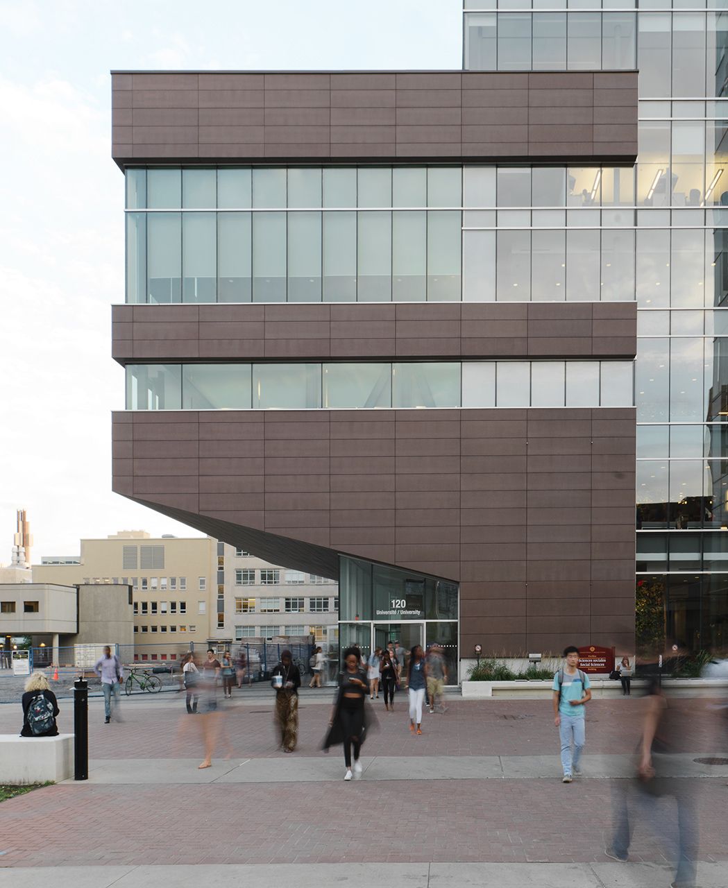Le bâtiment de l’université a été conçu par Diamond Schmitt Architects en collaboration avec KWC Architects. Les cinq étages inférieurs contiennent des salles de classe, des salles d’étude et des salles communes. Les étages supérieurs offrent un espace pour les séminaires, les bureaux et la recherche pour les professeurs, les doctorants et le personnel. Photos: Ditz Fejer