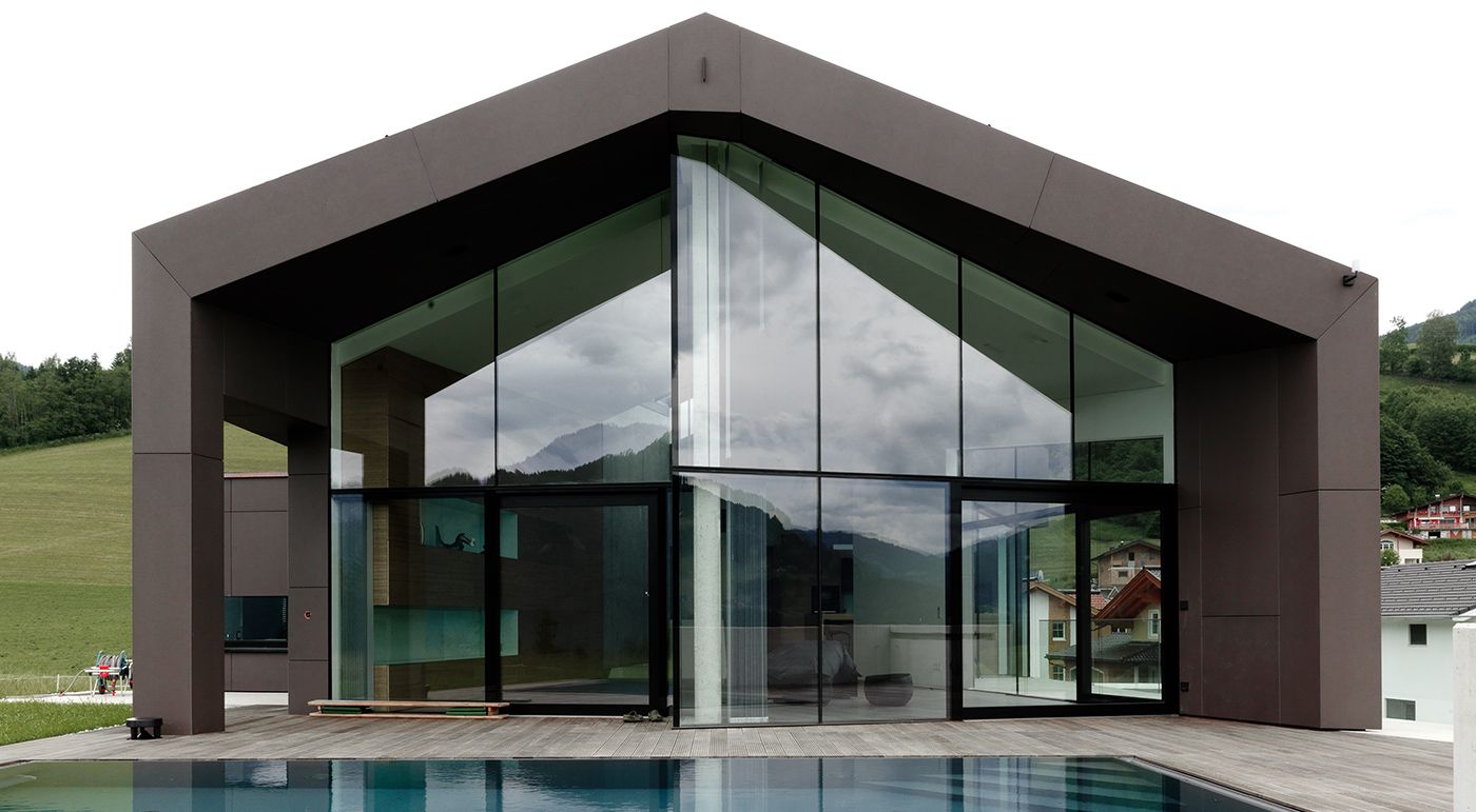 Le verre, l’acier et le béton ont été mélangés par l’architecte de Salzbourg Matthias Viehhauser pour former un bâtiment extrêmement artificiel. La villa, située sur le plateau de Kreuzberg, offre près de 300 m² de surface habitable, qui s’intègrent intelligemment dans le paysage sans le dominer. Photos: Ditz Fejer