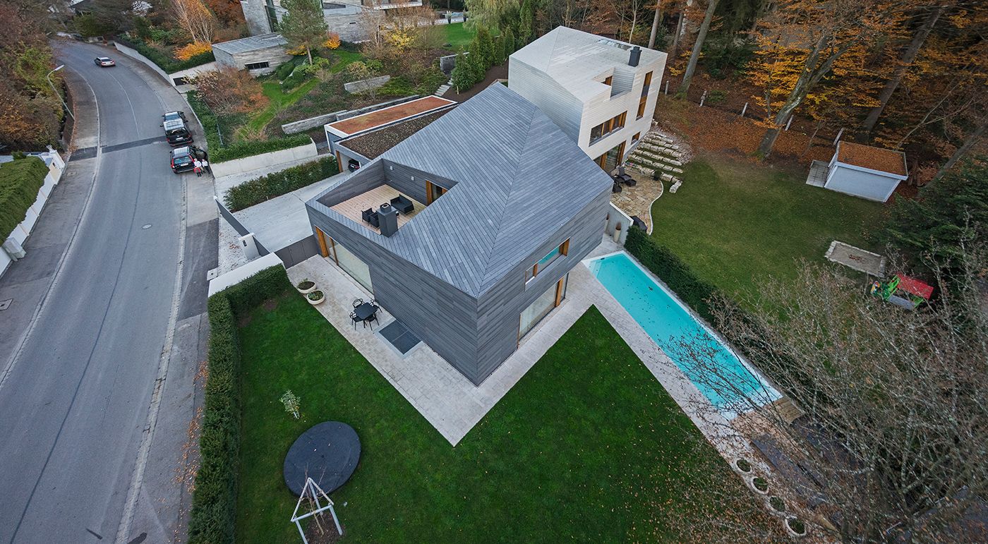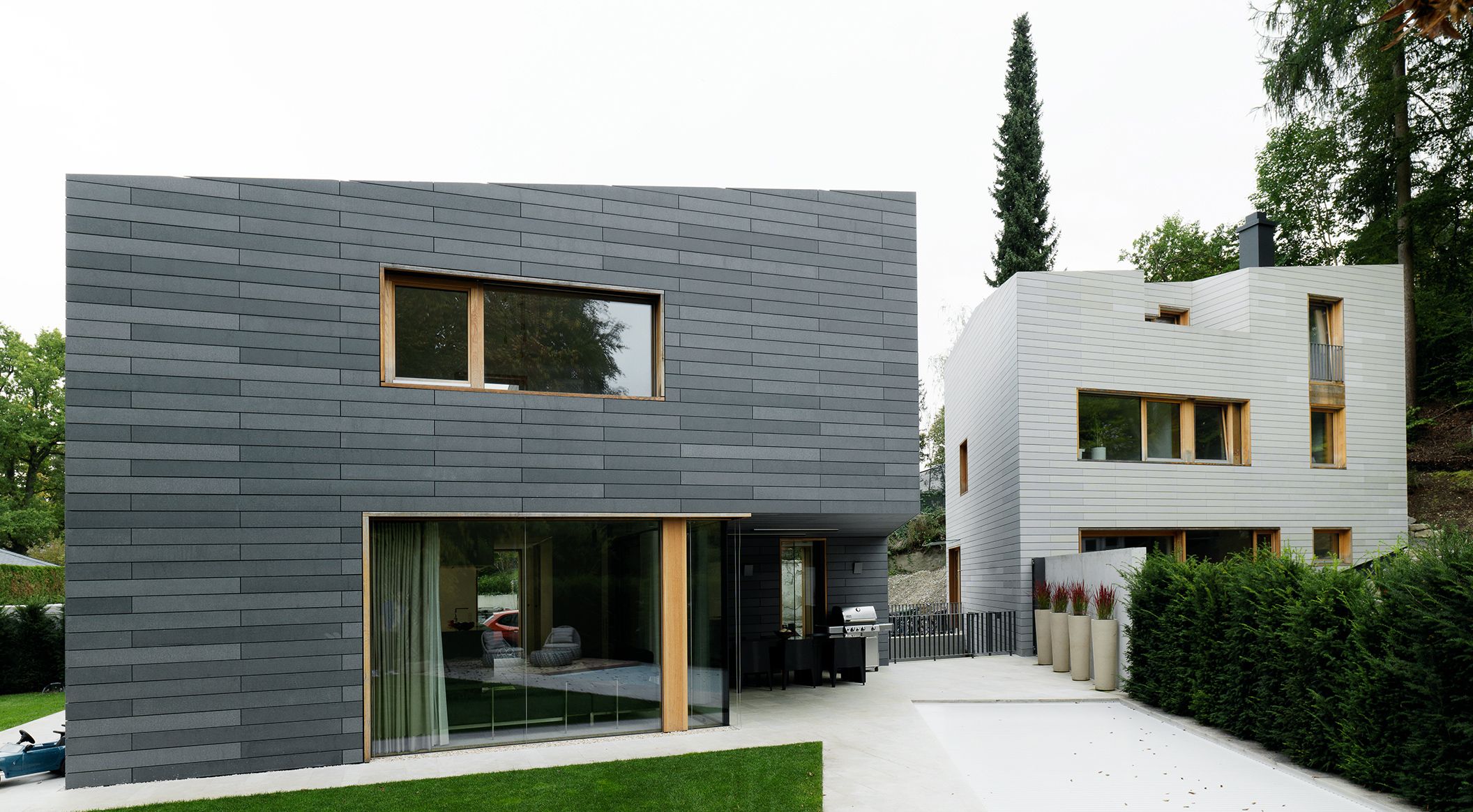 Les façades de deux maisons individuelles privées à Grünwald ont été réalisées avec des panneaux öko skin dans différentes teintes de gris. Photos : Ditz Fejer, Eckhart Matthäus