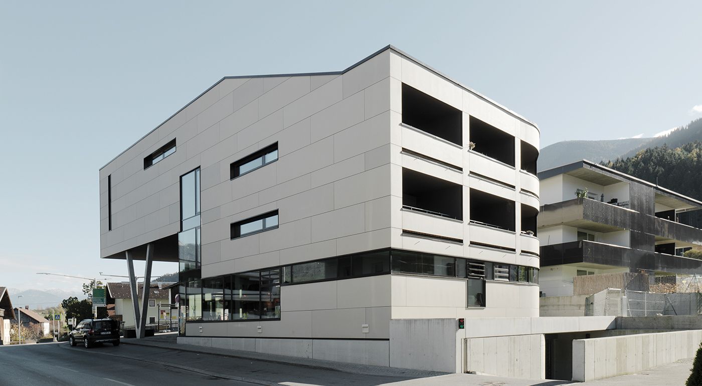 Dans l’objectif de revitaliser le cœur du village, Helmut Seelos a réalisé pour un entrepreneur privé au centre de Hatting une construction neuve qui est plus qu’un simple bâtiment à usage commercial et d’habitation. Le rez-de-chaussée accueille un supermarché miniM et une boulangerie avec café, permettant ainsi à la fois d’assurer un approvisionnement de proximité et de créer un point de rencontre pour la population. Photos: Ditz Fejer